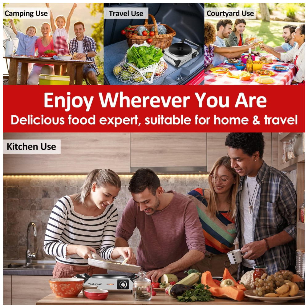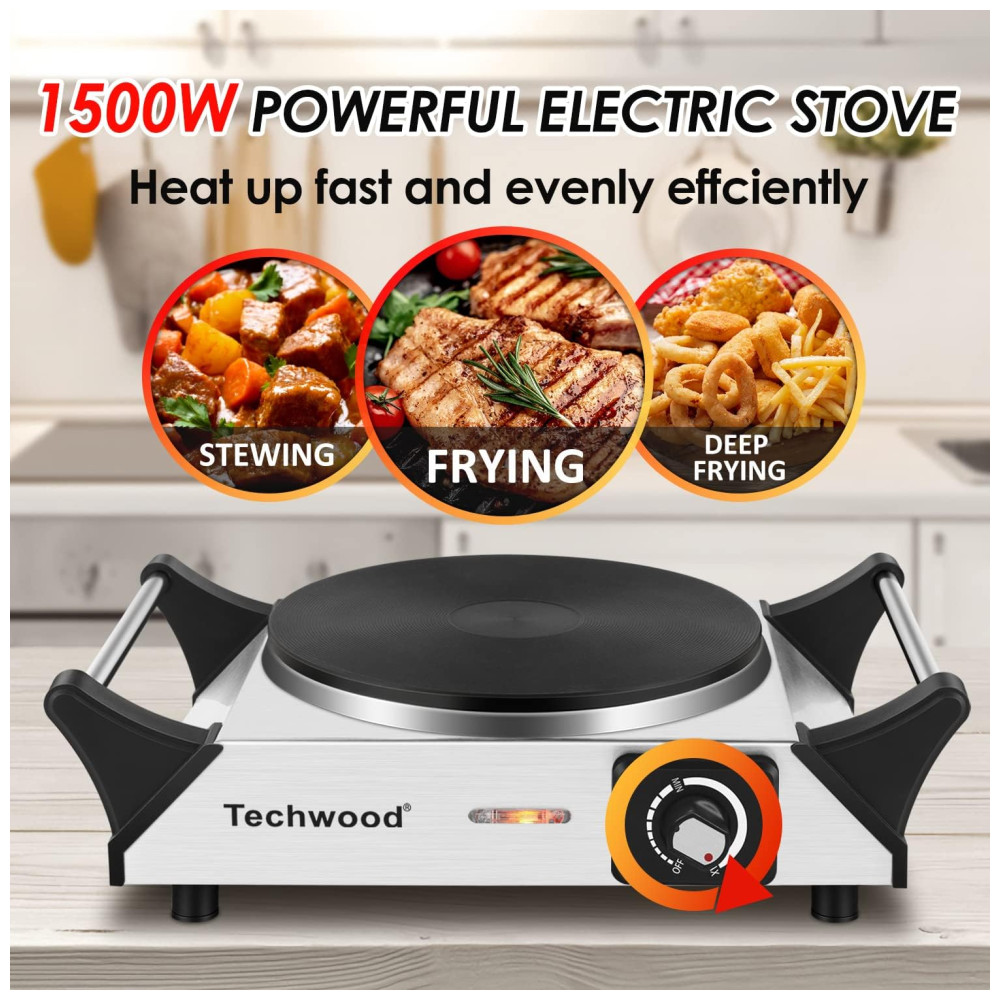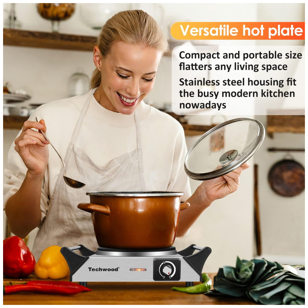 O cooktop elétrico Techwood combina potência e segurança, com 1500 W de potência que garantem um aquecimento mais rápido do que os fogões convencionais. Sua carcaça moderna em aço inoxidável escovado e os pés antiderrapantes proporcionam um cozimento estável e seguro.