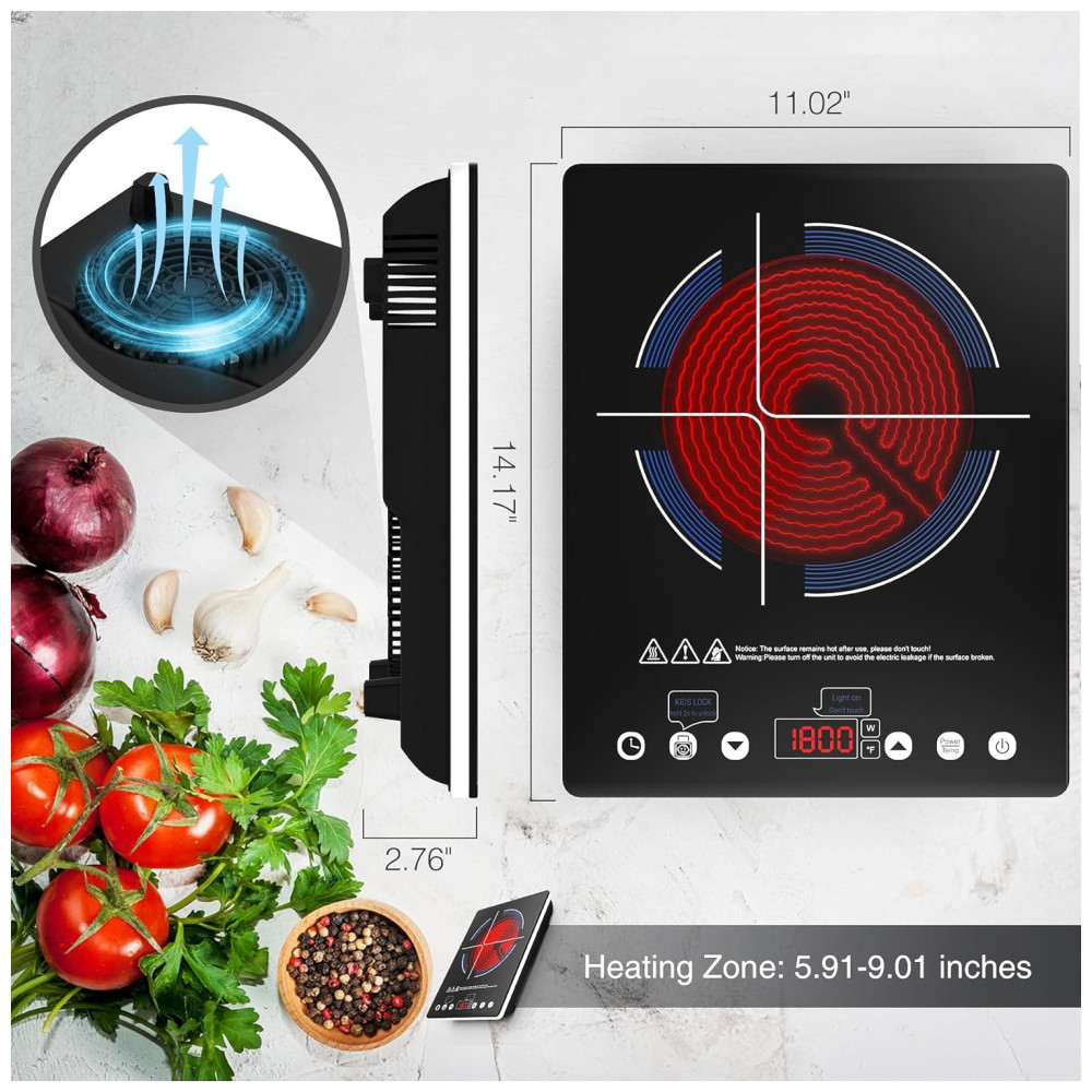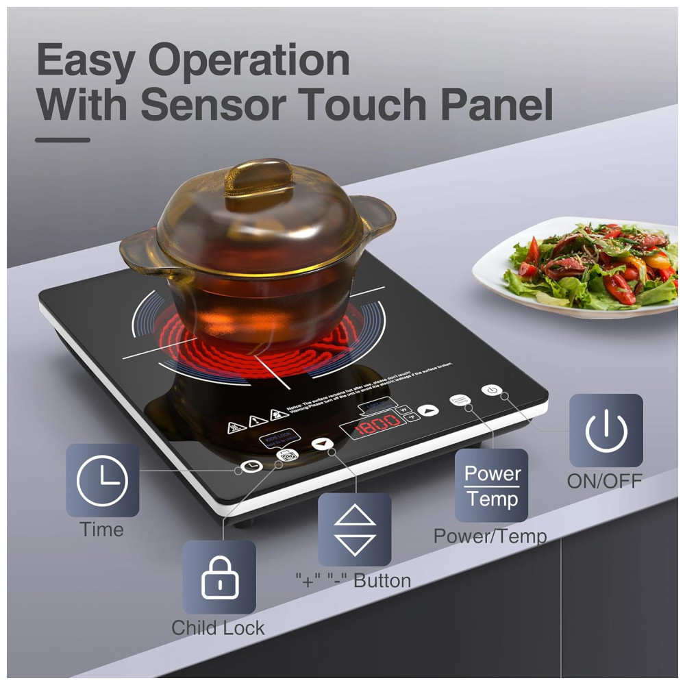 Este Cooktop Elétrico portátil de um queimador é ideal para cozinhas pequenas, dormitórios, áreas externas, trailers e barcos. Compacto e fácil de transportar, ele funciona com a energia padrão de 110 volts das tomadas comuns.