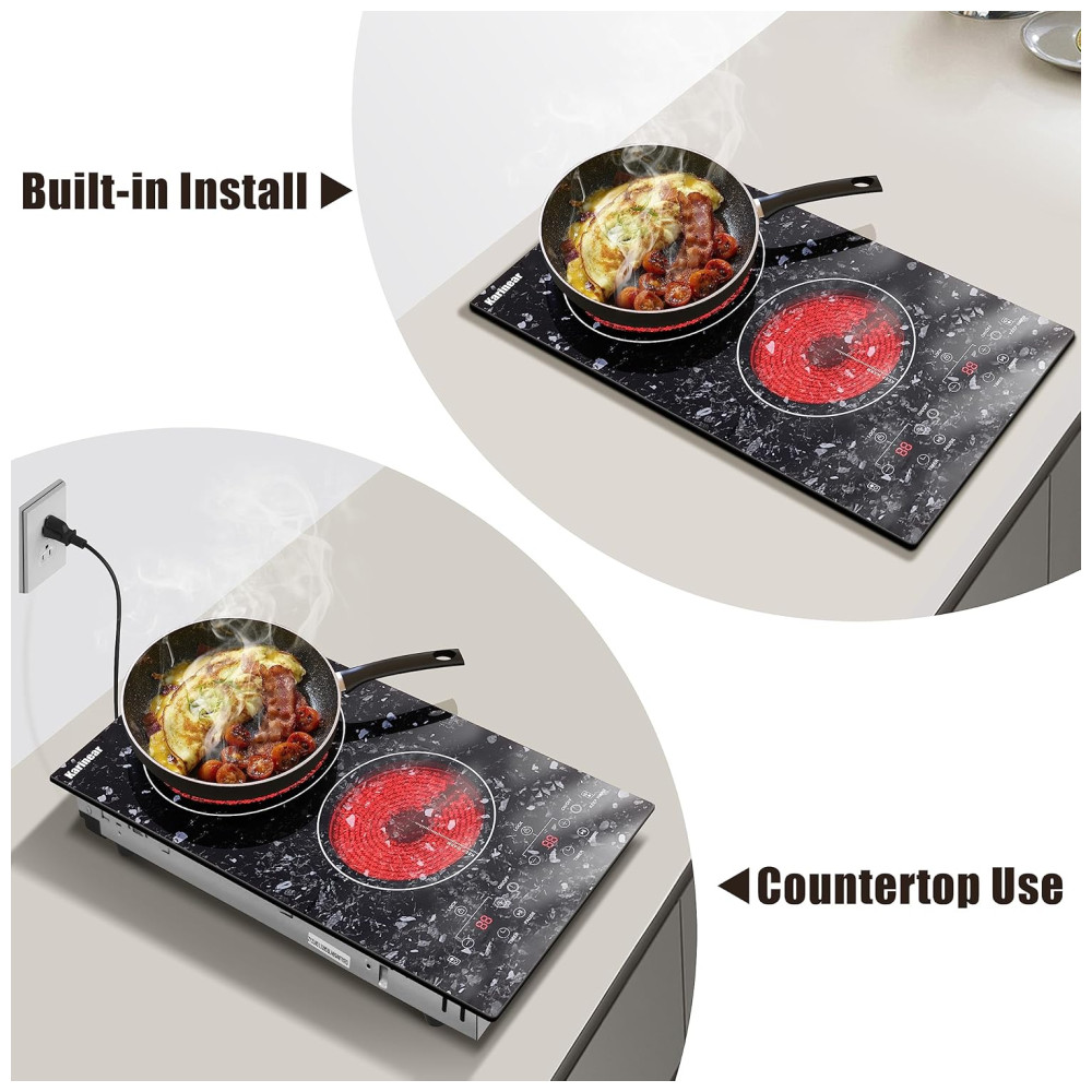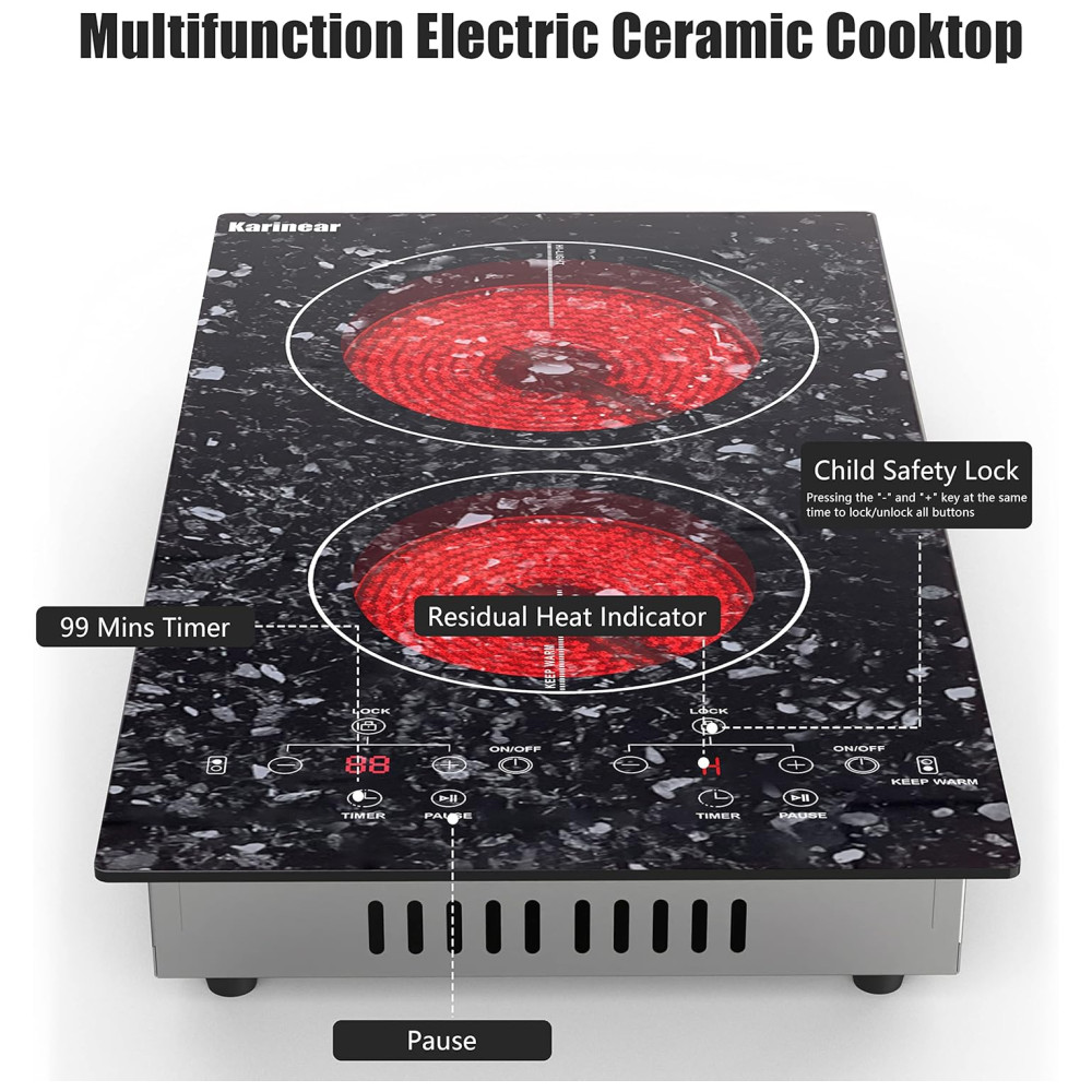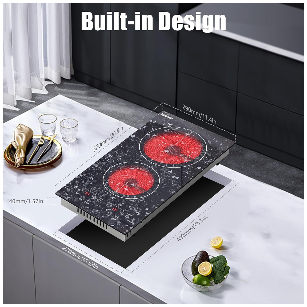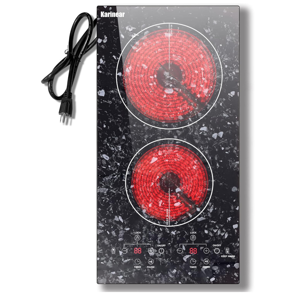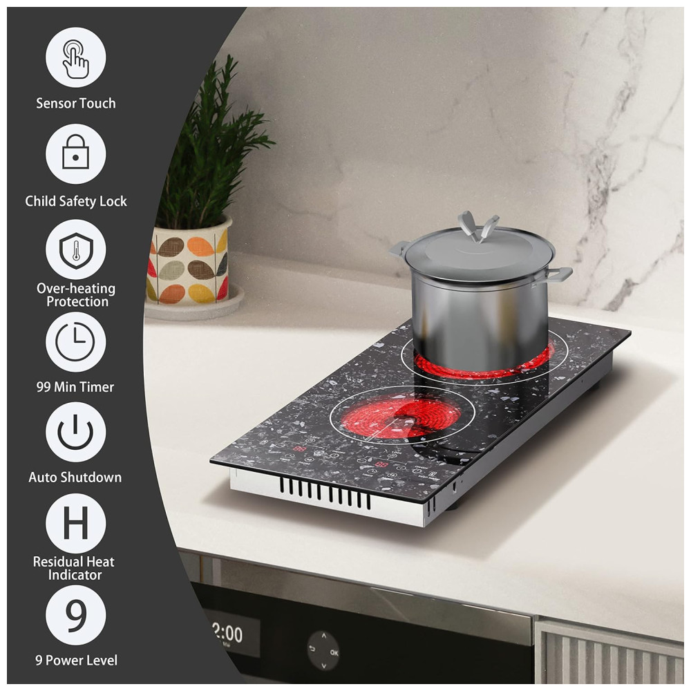 Cooktop Elétrico Portátil Karinear 2 Bocas 110v Cooktop de Cerâmica de 30 cm com Lindo Padrão de Mármore