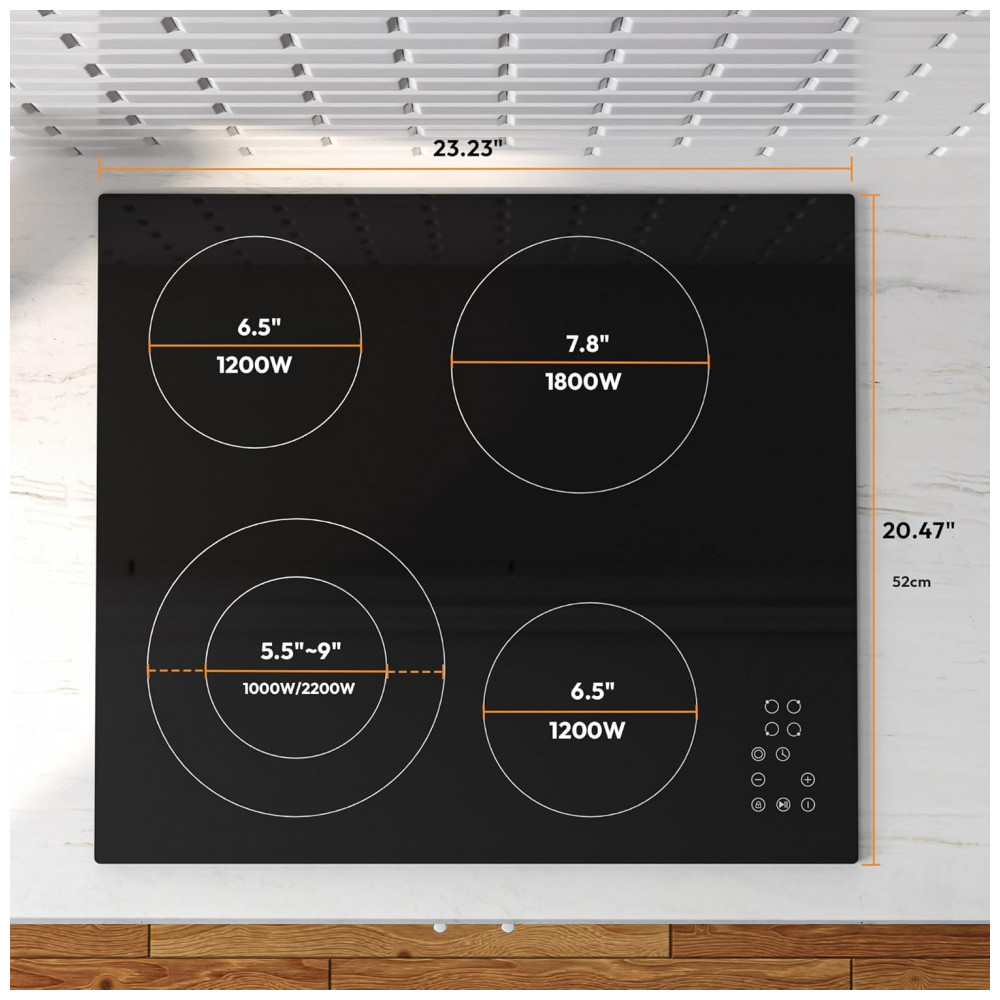 Superfície de limpeza: Vidro cerâmico liso, adequada para limpeza com pano macio e limpador específico para vidro cerâmico