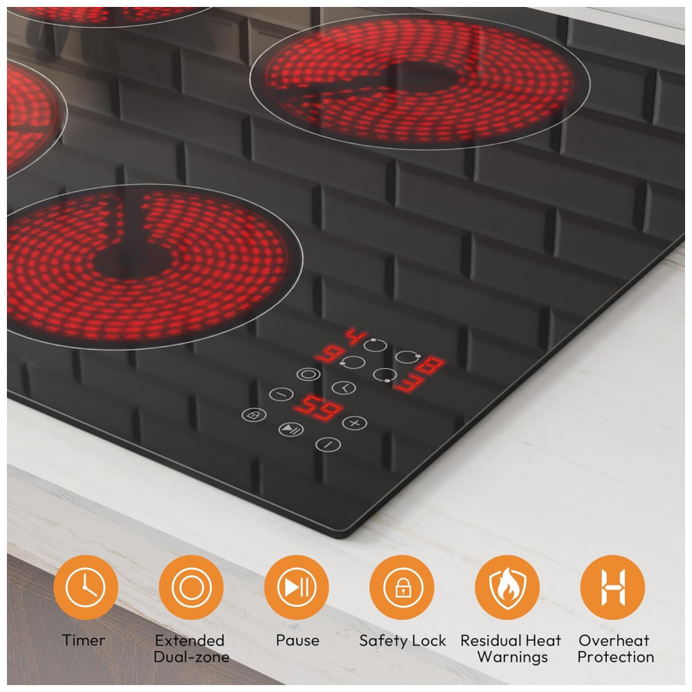Cooktop elétrico radiant 59cm Empava 4 zonas vidro preto zona dupla 6400W 220V