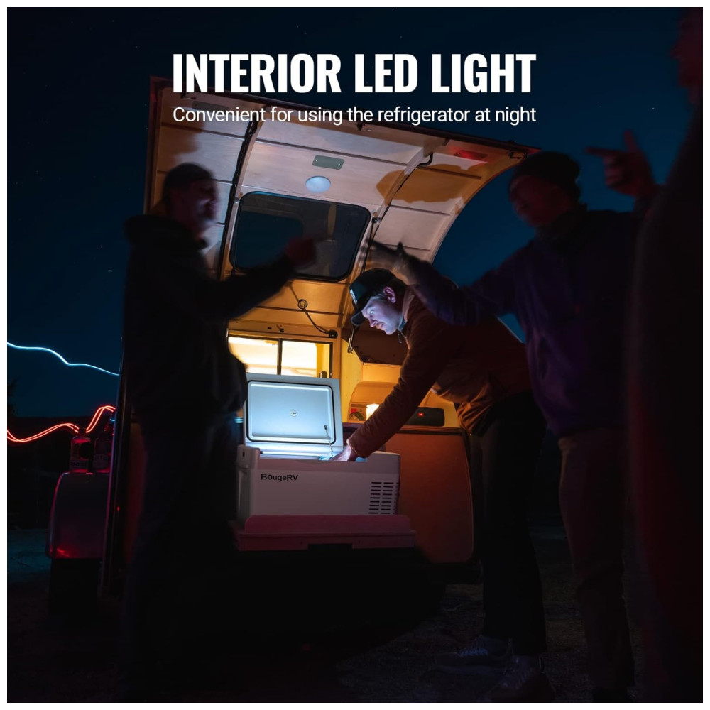 Modo Max e Eco Usage menor consumo de energia Com a tecnologia de refrigeração por compressor CRPRO, a geladeira 12 volts consome 45W no modo Max e apenas 36W no modo Eco, contribuindo para a economia. Este refrigerador atualizado também adiciona uma luz LED interna para você usar à noite. Você também pode usar esta geladeira para fazer compras e manter os alimentos frescos.