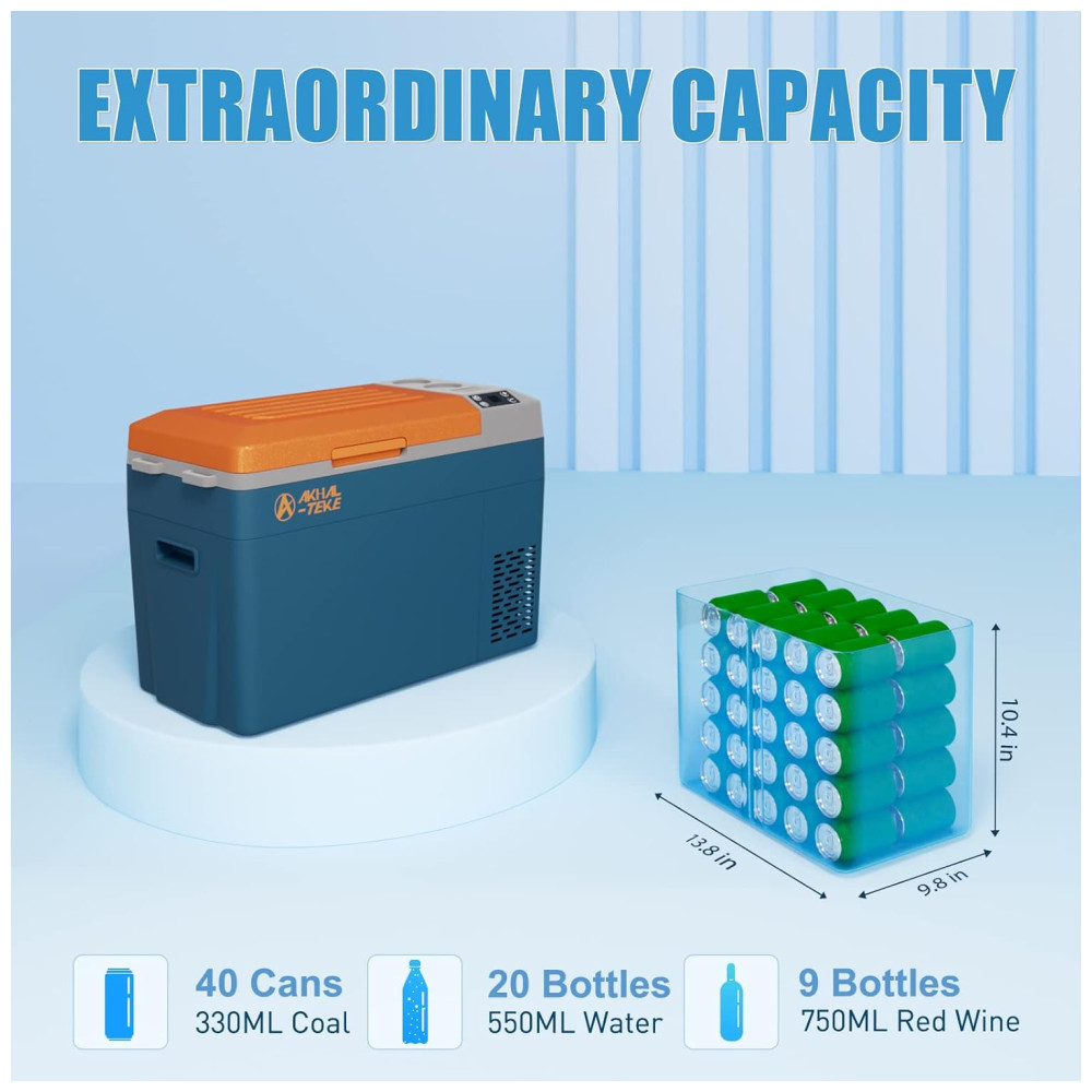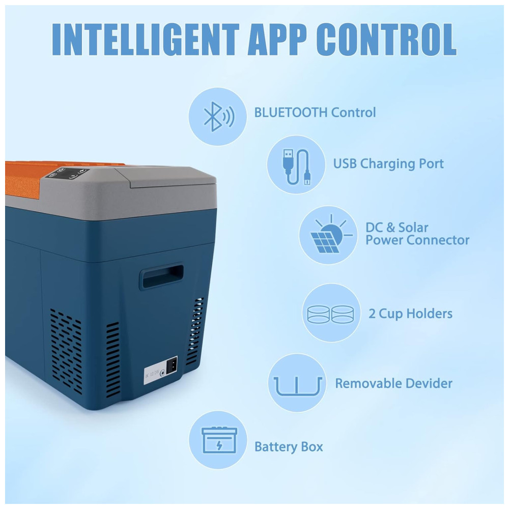 Cooler Elétrico Automotivo Portátil 23 Litros com Controle por APP AKHAL TEKE Azul