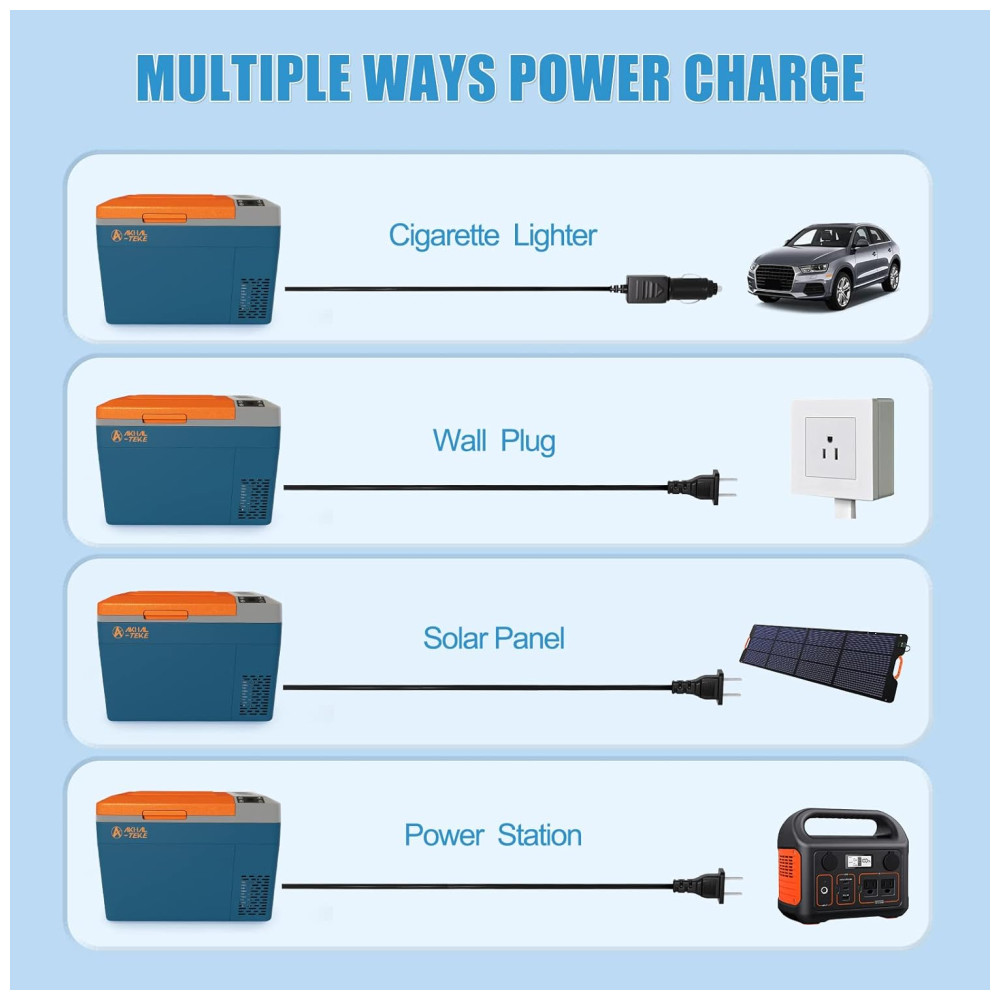 FONTE DE ALIMENTAÇÃO MÚLTIPLA Trabalhe sob alimentação de 12, 24 V DC em vários veículos via conector de isqueiro cabo incluído. Ou alimentado por tomada doméstica com adaptador de tomada de parede de 110 V incluído, também pode ser alimentado por estação de energia não incluída