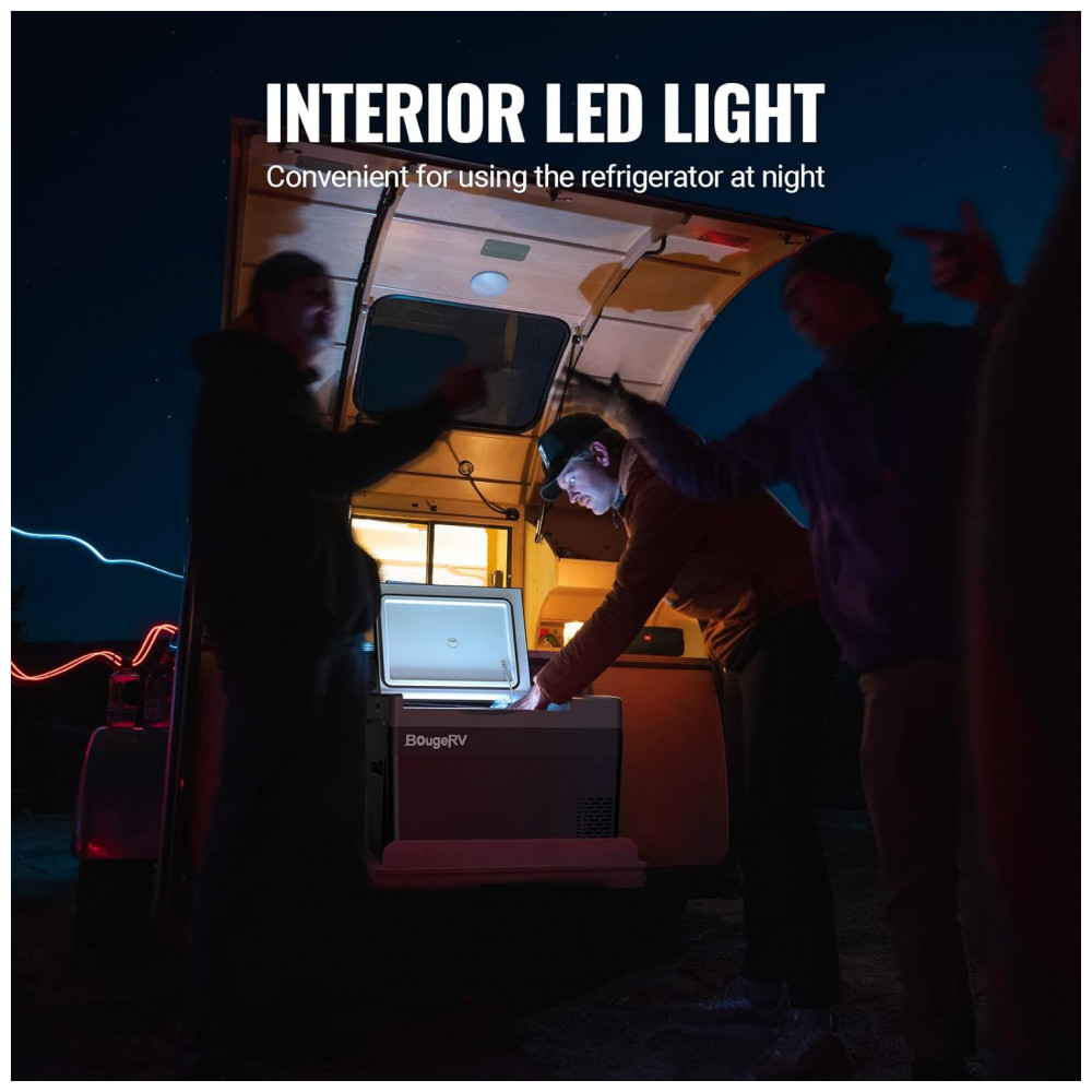 Modo Max e Eco Usage menor consumo de energia Com a tecnologia de refrigeração por compressor CRPRO, a geladeira 12 volts consome 45W no modo Max e apenas 36W no modo Eco, contribuindo para a economia. Este refrigerador atualizado também adiciona uma luz LED interna para você usar à noite. Você também pode usar esta geladeira para fazer compras e manter os alimentos frescos.