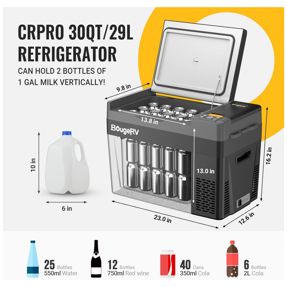 Cooler Elétrico Automotivo Portátil 30 Litros com Compressor BougeRV CRPRO30 Preto