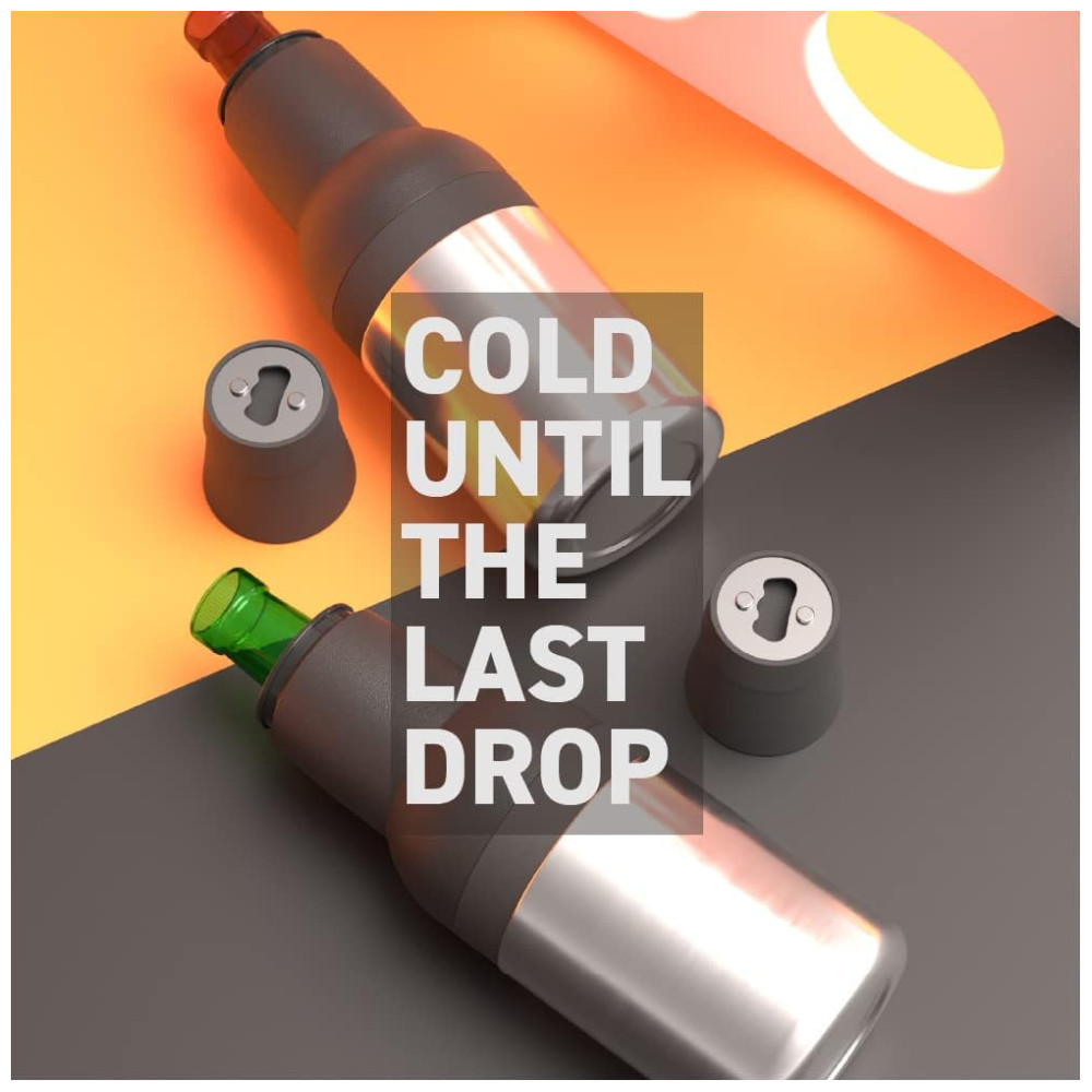 ISOLAR TODA A GARRAFA A construção em aço inoxidável de parede dupla com isolamento a vácuo garante uma cerveja gelada por horas a fio
