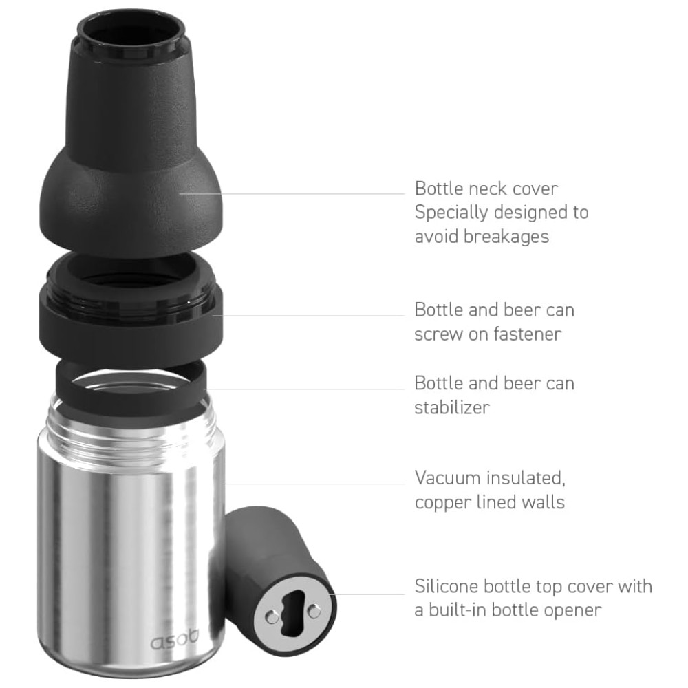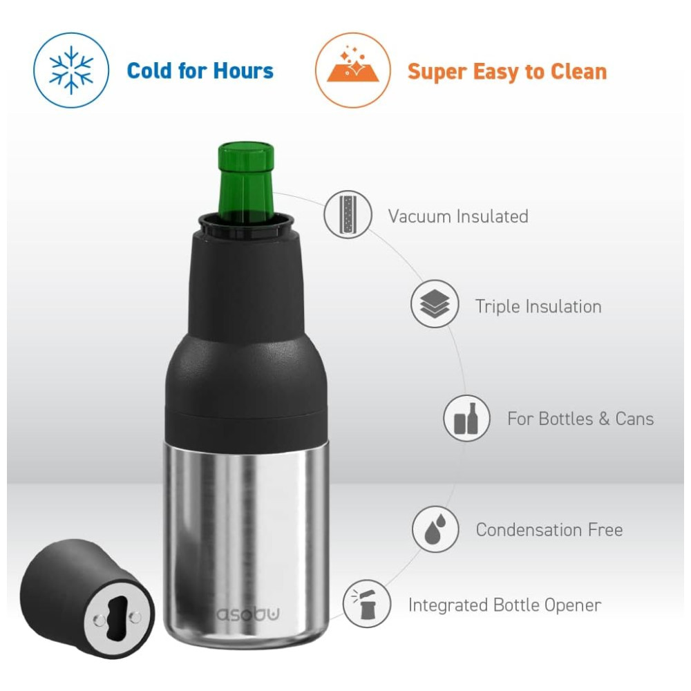 Cooler Portátil para Garrafas de cerveja com Isolamento Duplo Aço Inox ASOBU Frosty Beer Prateado