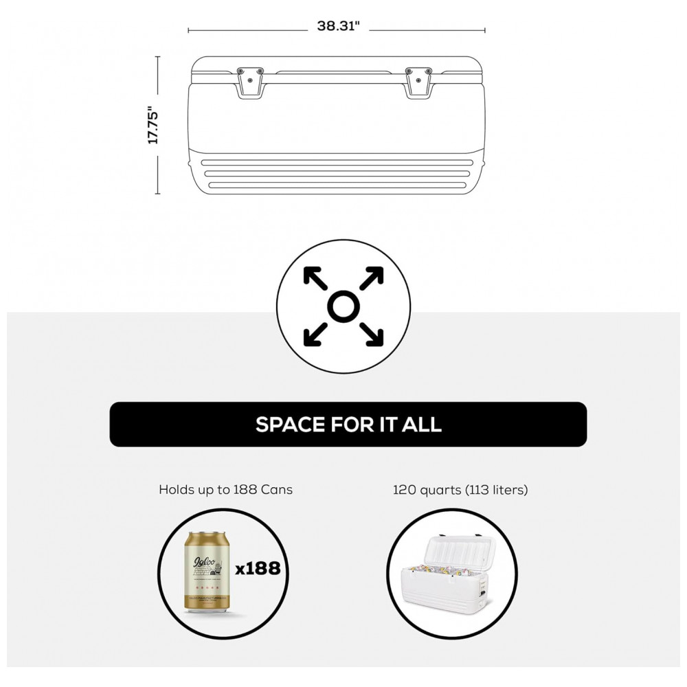 Cooler Térmico Portátil 120 Litros com Isolamento Espesso Igloo Branco