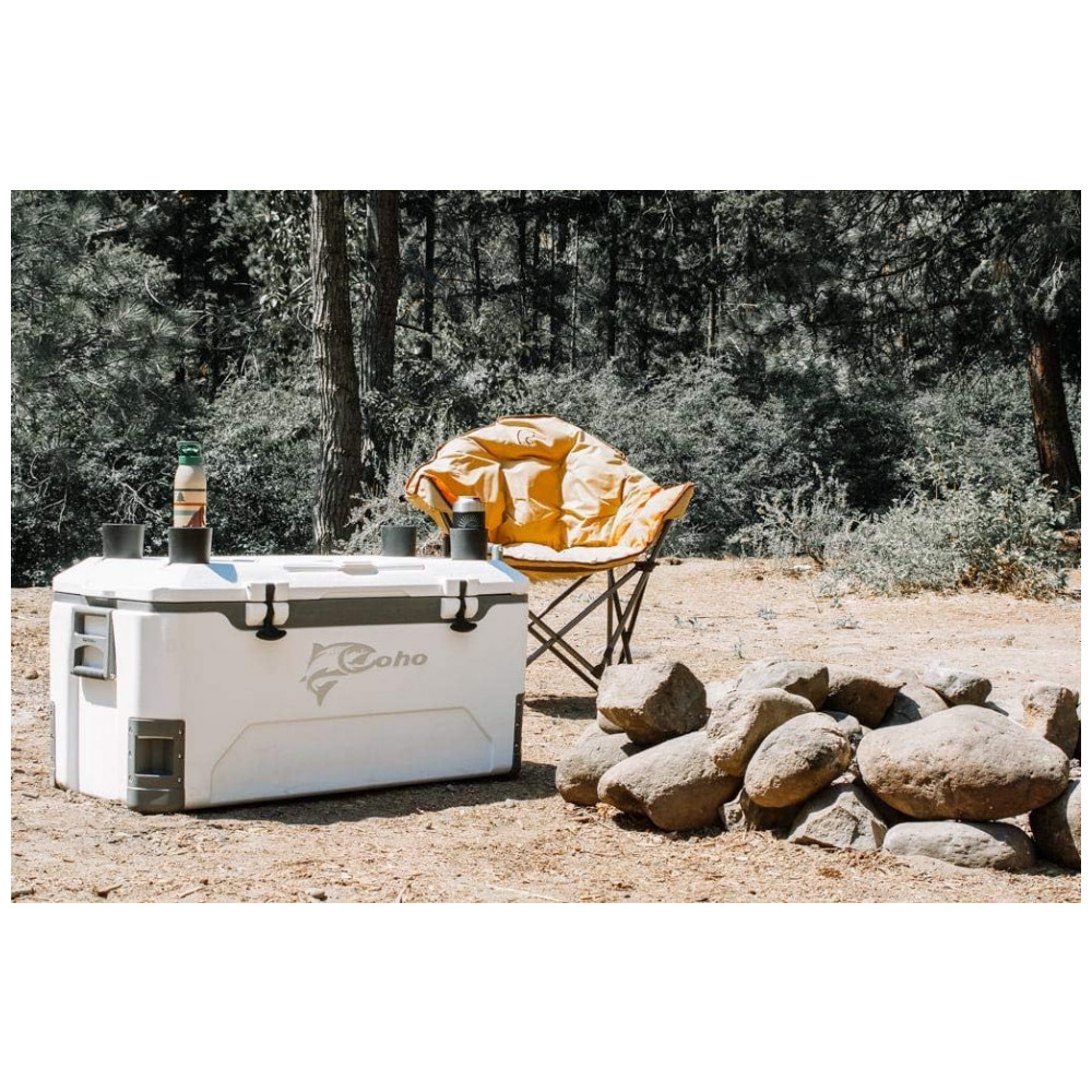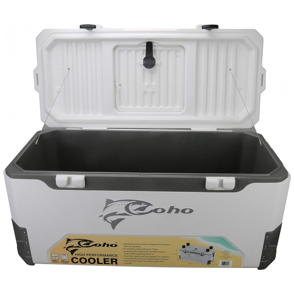 COOLER ISOLADO O Coho Cooler mantém o gelo por dias a fio com até de isolamento de nível e travas ColdSeal. Mantenha suas bebidas, refeições, capturas ou compressas de gelo frias por dias.