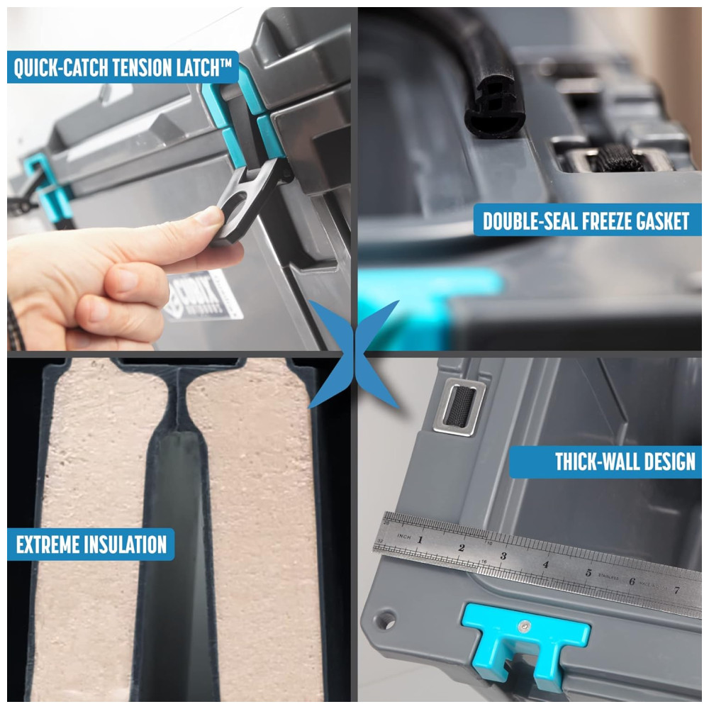 MANTÉM O GELO FRIO POR MUITO TEMPO ao contrário de outros refrigeradores que NÃO cumprem suas promessas de ICE HOLD, o CUBIX manterá seu COOLER FRIO por até 3 dias. Nosso refrigerador de alta tecnologia é equipado com DESIGN DE PAREDE ESPESSA, com 3 de EXTREME ISOLAMENTO para prender o frio e superar as expectativas. ADEUS GELO DERRETIDO PRECOCE