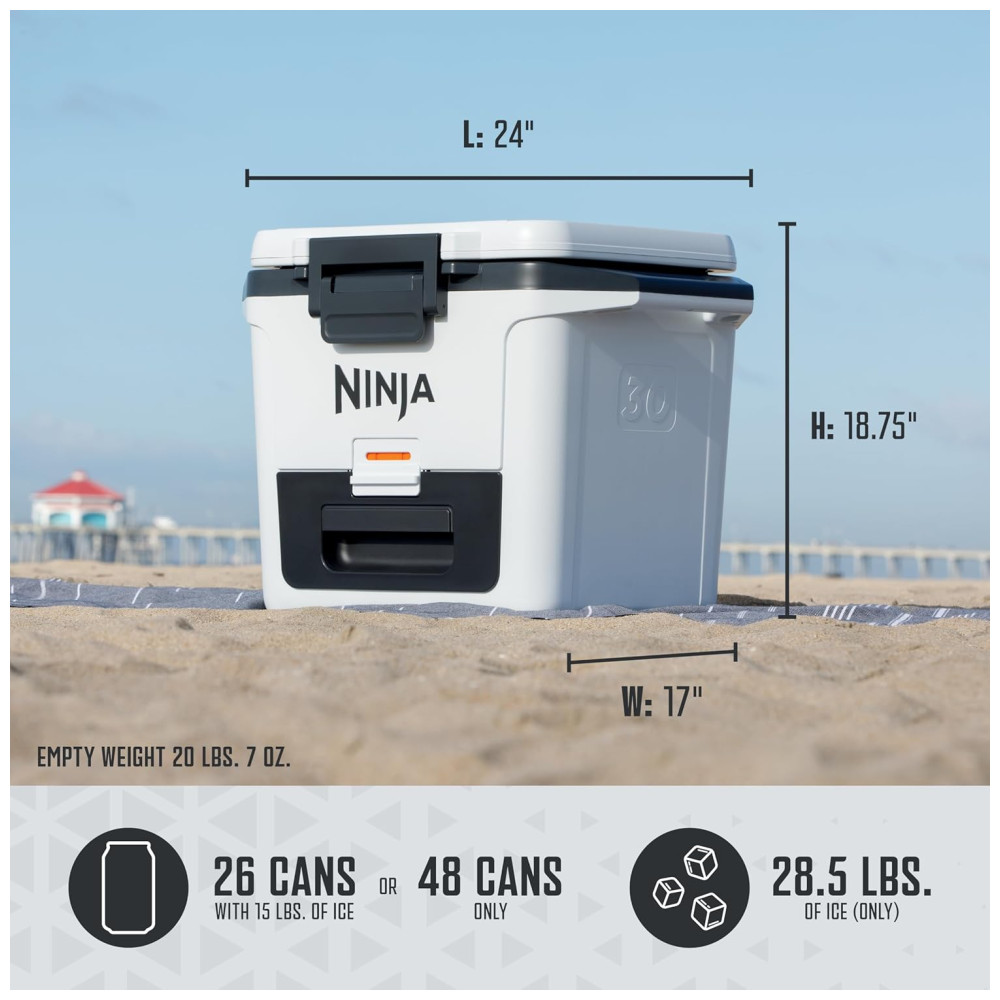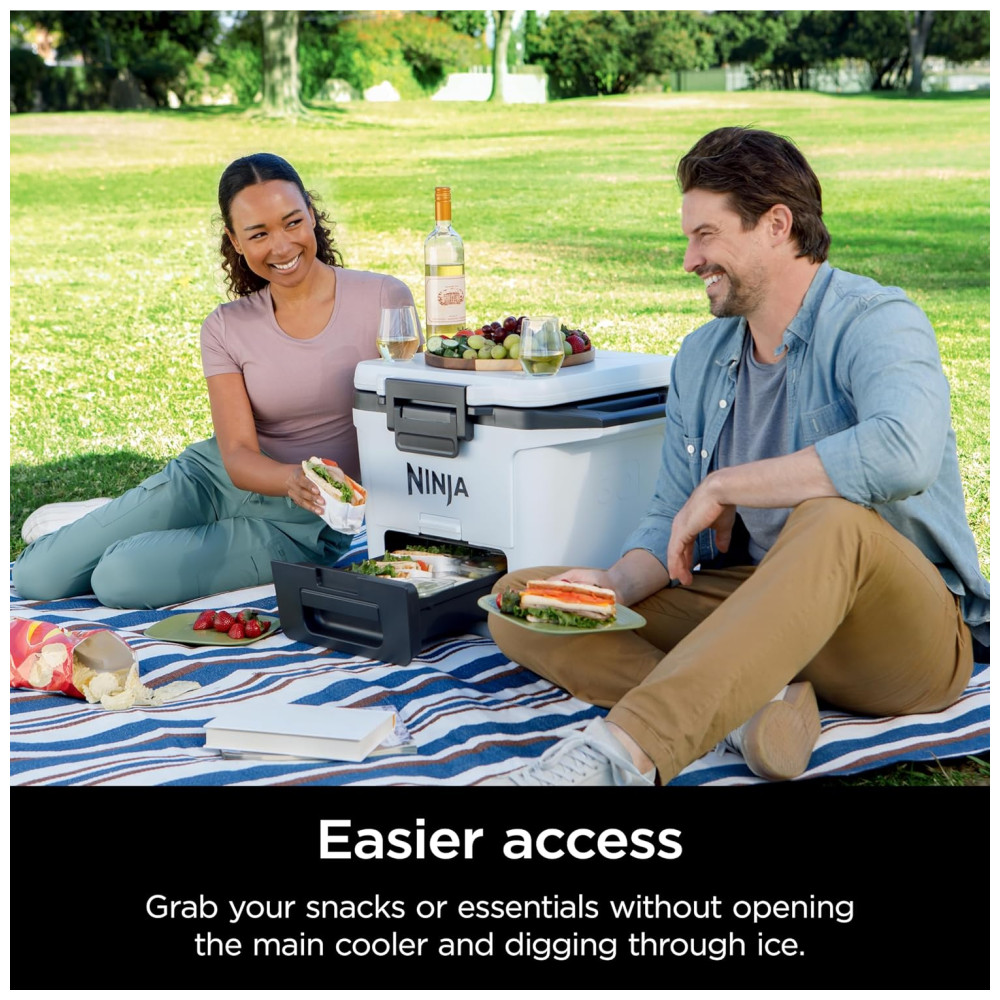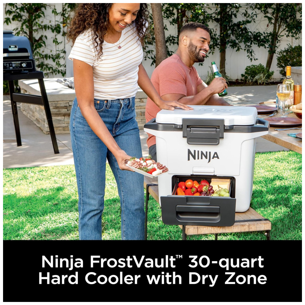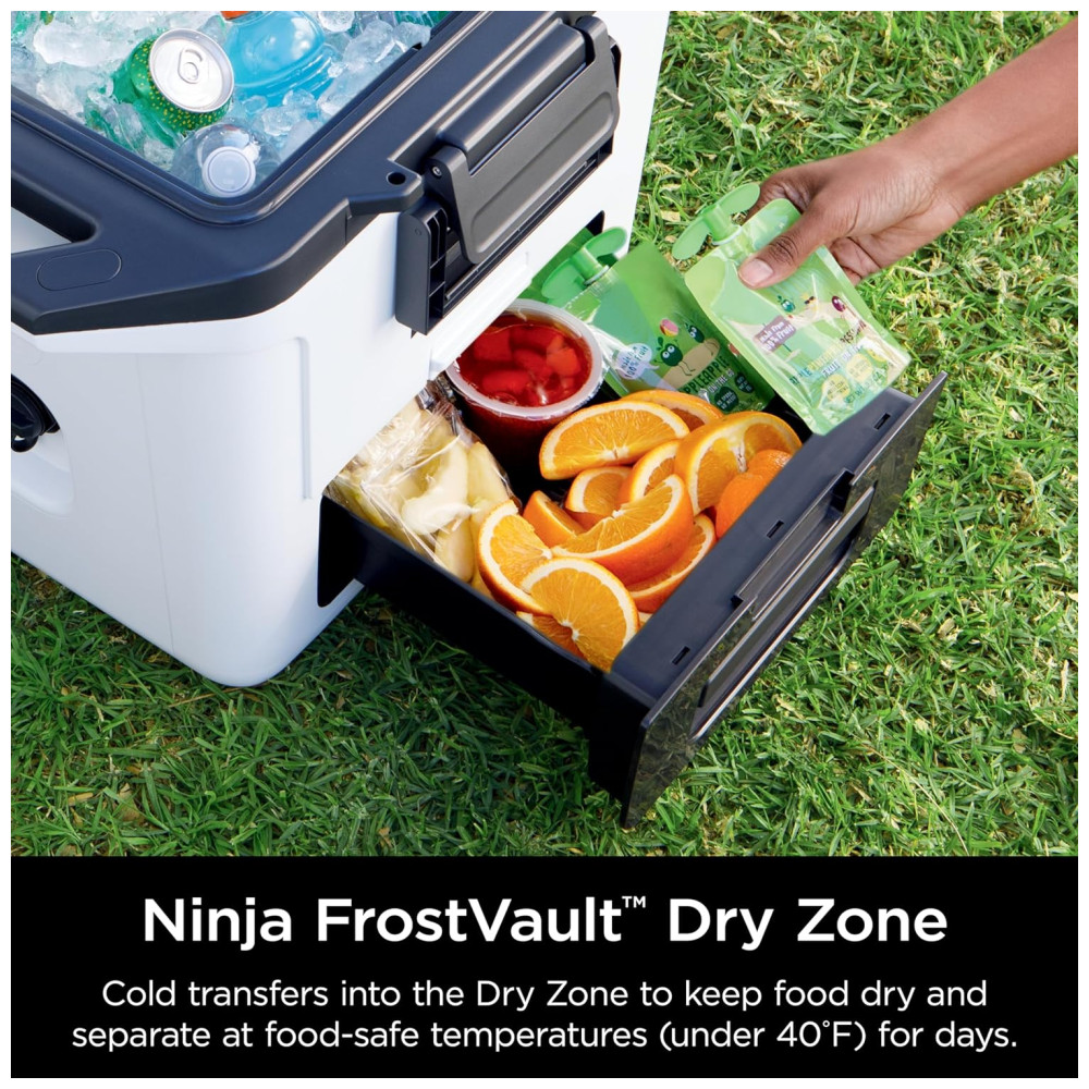 Cooler Térmico Portátil 28L com Gaveta em Zona Seca Premium Mantém o Gelo por Dias Ninja FrostVault FB131WH Cinza Ardósia