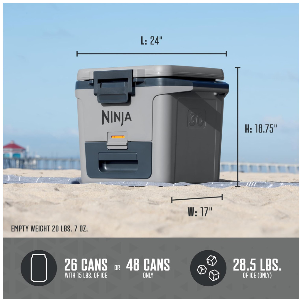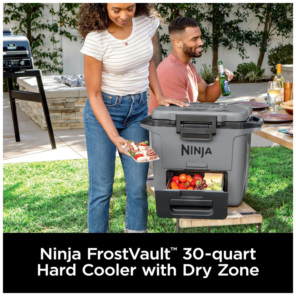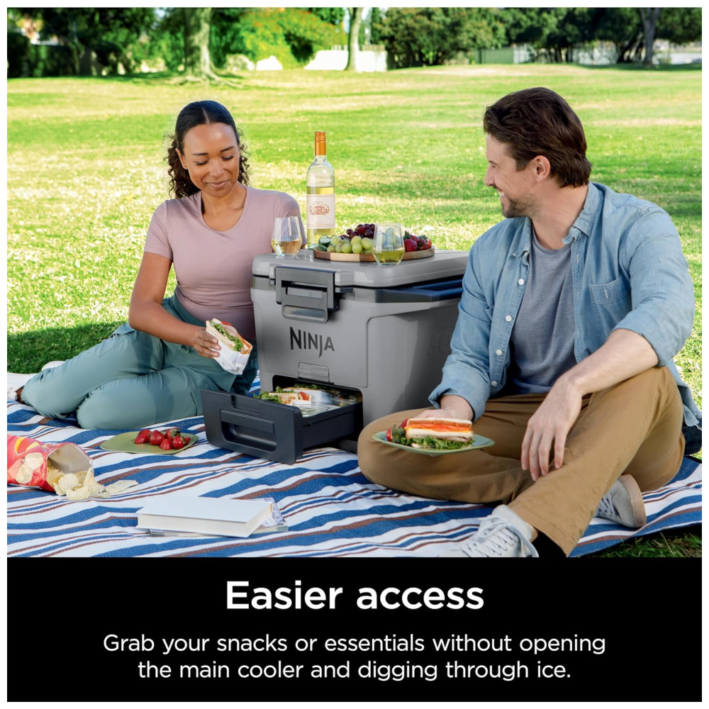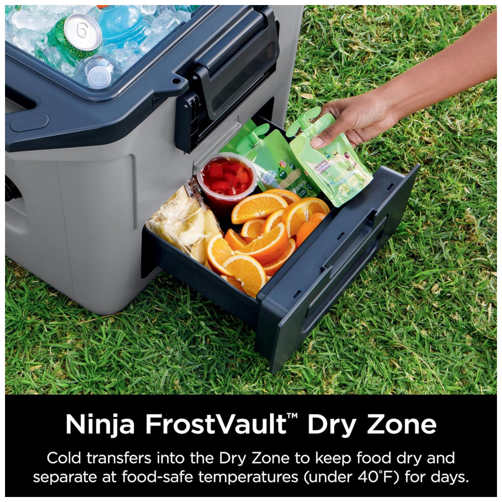 Cooler Térmico Portátil 28L com Gaveta em Zona Seca Premium Mantém o Gelo por Dias Ninja FrostVault FB131WH Cinza Ardósia