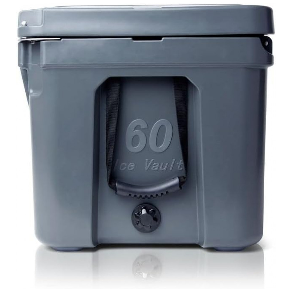 CARACTERÍSTICAS INGENUITIVAS DO COOLER Inclui pés antiderrapantes, tampa com trava, gaxeta estilo freezer, alças seguras, sistema de drenagem rápida e muito mais. Este refrigerador grande 60 litros é o refrigerador de praia perfeito para manter sua comida e bebidas geladas quando você estiver em uma escapadela no oceano.