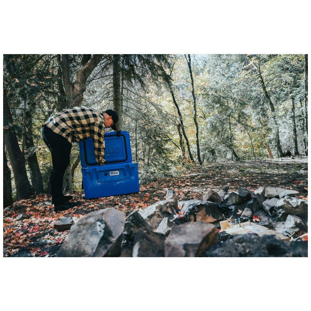 PREPARAR. DEFINIR. VIAGEM O Blue Coolers 60 litros Ice Vault suportará o abuso mais difícil devido à melhor durabilidade da classe. Se você precisa simplesmente manter o sol afastado em um jogo de futebol ou precisa de um refrigerador que possa suportar ursos, insetos e a vida selvagem ao ar livre, o refrigerador de acampamento Blue Coolers fará isso