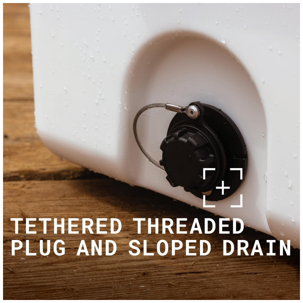 CARACTERÍSTICAS Alça de transporte sobremoldada, travas de travamento de , ferrolho travável reforçado, abridor de garrafas de aço inoxidável, sistema de dobradiça anti cisalhamento, slots de amarração moldados.