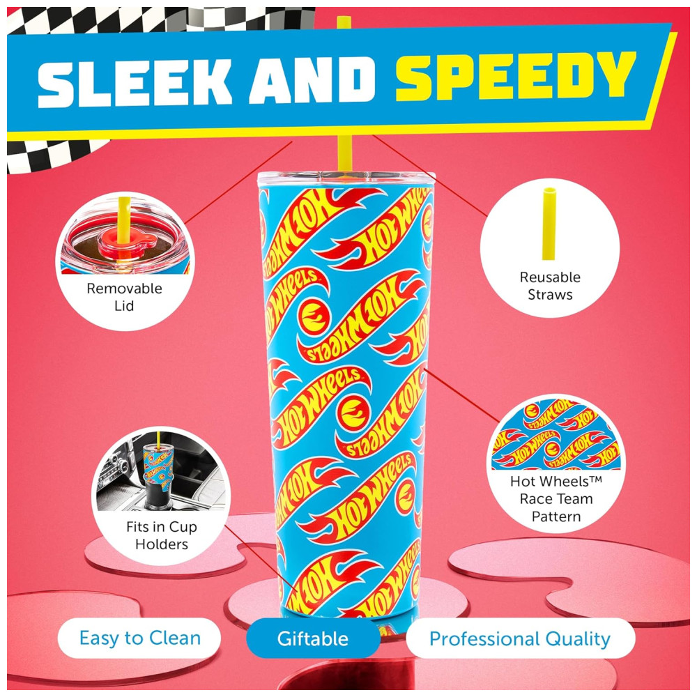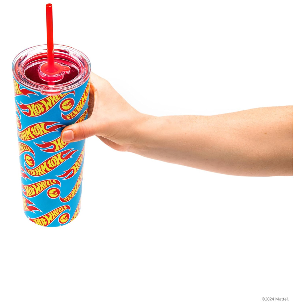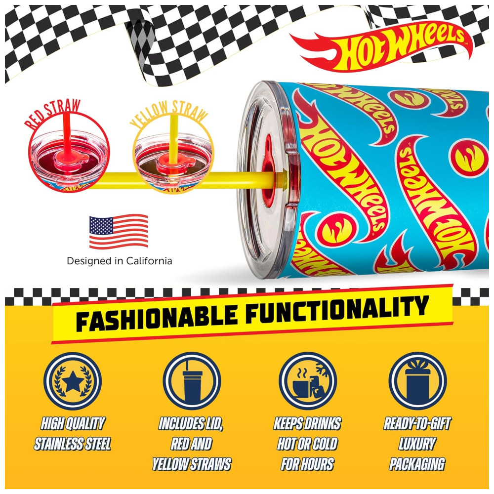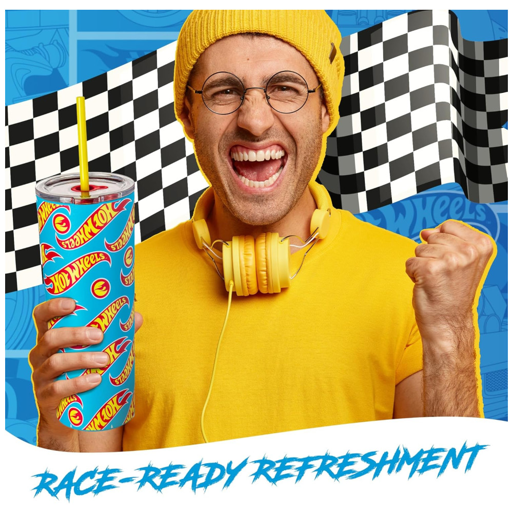 Copo 700 mL Hot Wheels de Aço Inoxidável Isolado a Vácuo com Tampa e 2 Canudos Azul