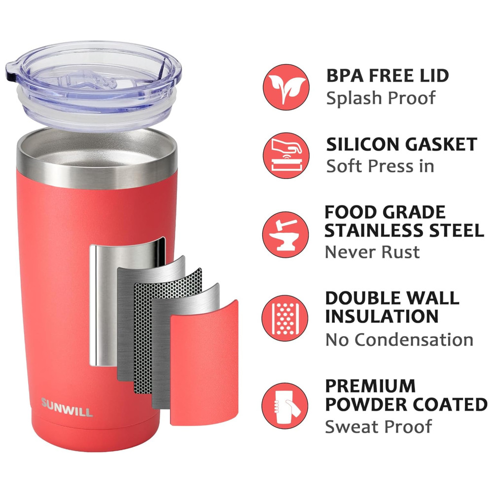 Aço inoxidável isolado o copo Sunwill 20oz é com tecnologia de vácuo de parede dupla para manter as bebidas quentes por mais de 6 horas e frias por cerca de 24 horas.