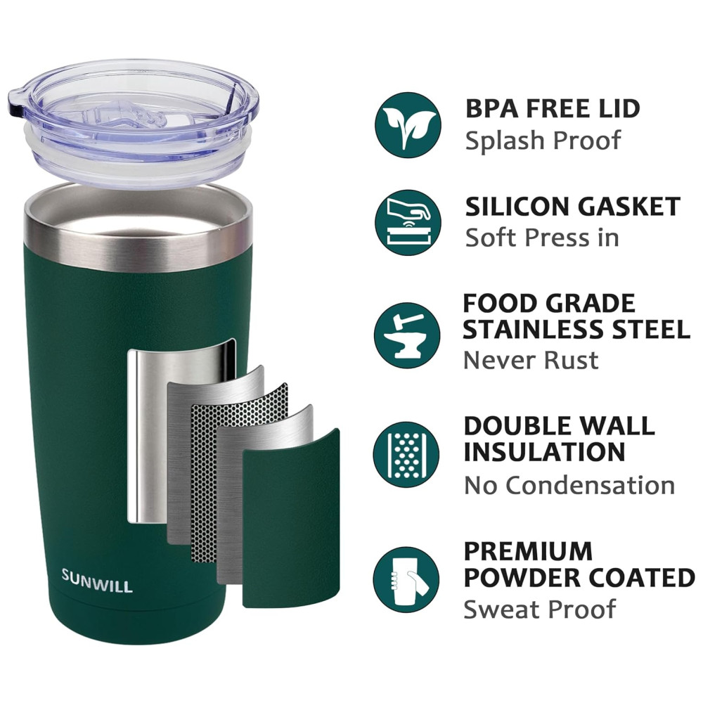 Aço inoxidável isolado o copo Sunwill 20oz é com tecnologia de vácuo de parede dupla para manter as bebidas quentes por mais de 6 horas e frias por cerca de 24 horas.