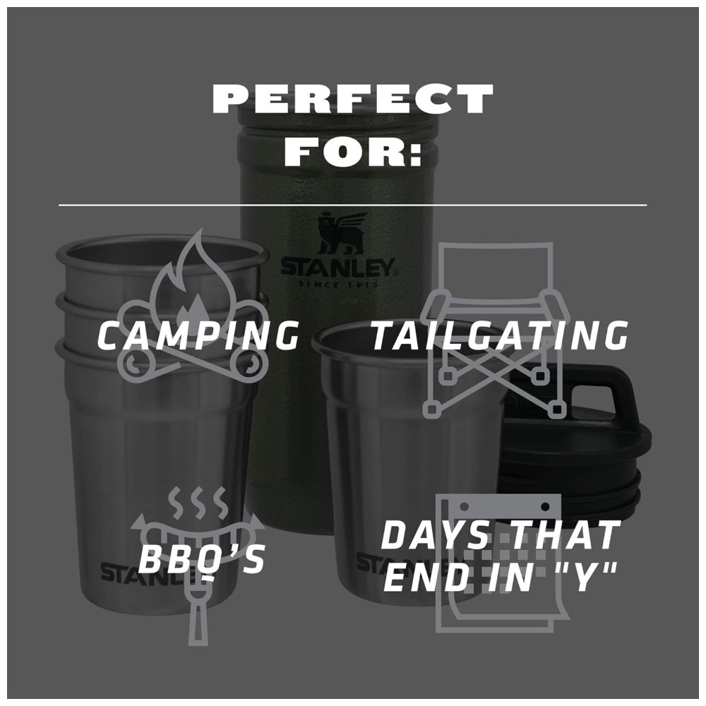ESTRATIFICADO E IN QUEBRÁVEL Experimente a lendária qualidade Stanley em jogo Criamos os copos de metal e a caixa de transporte usando aço inoxidável super resistente, naturalmente livre de BPA, resistente à ferrugem e adequado para máquina de lavar louça.