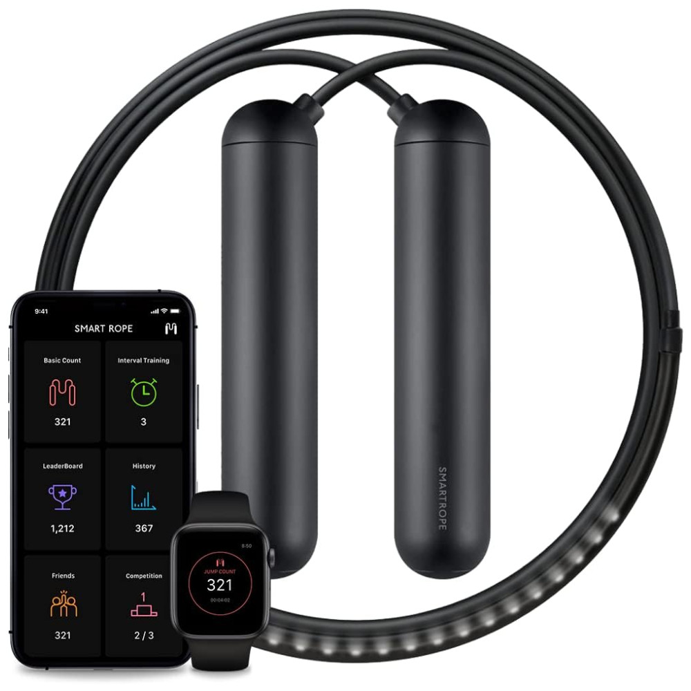 Sincronize a corda de pular com o aplicativo móvel Smart Gym gratuito iOS Android,Apple Watch para monitorar a contagem de saltos calorias queimadas tempos de treino e treinamento intervalado