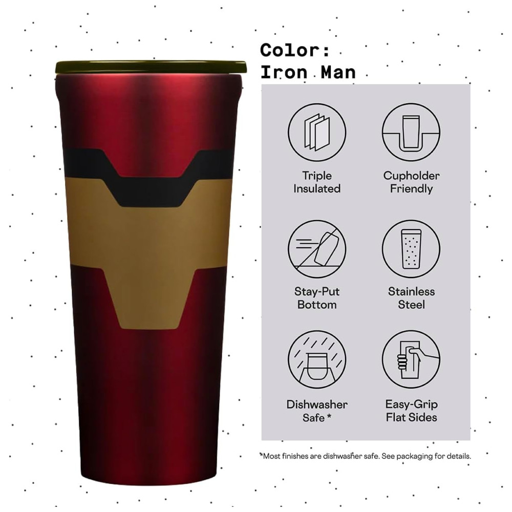 MARVEL TRAVEL TUMBLER O copo de viagem com tema da Marvel mantém seu vinho gelado e seu café quente para bebidas deliciosas que você pode saborear