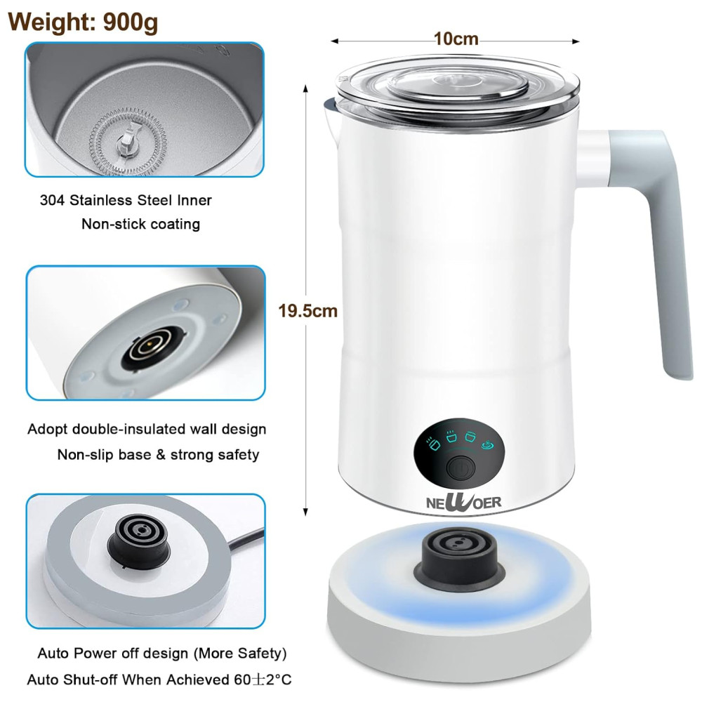 CORNMI Espumador Elétrico Automático 350 mL Aço Inoxidável 110v NEWOER Branco