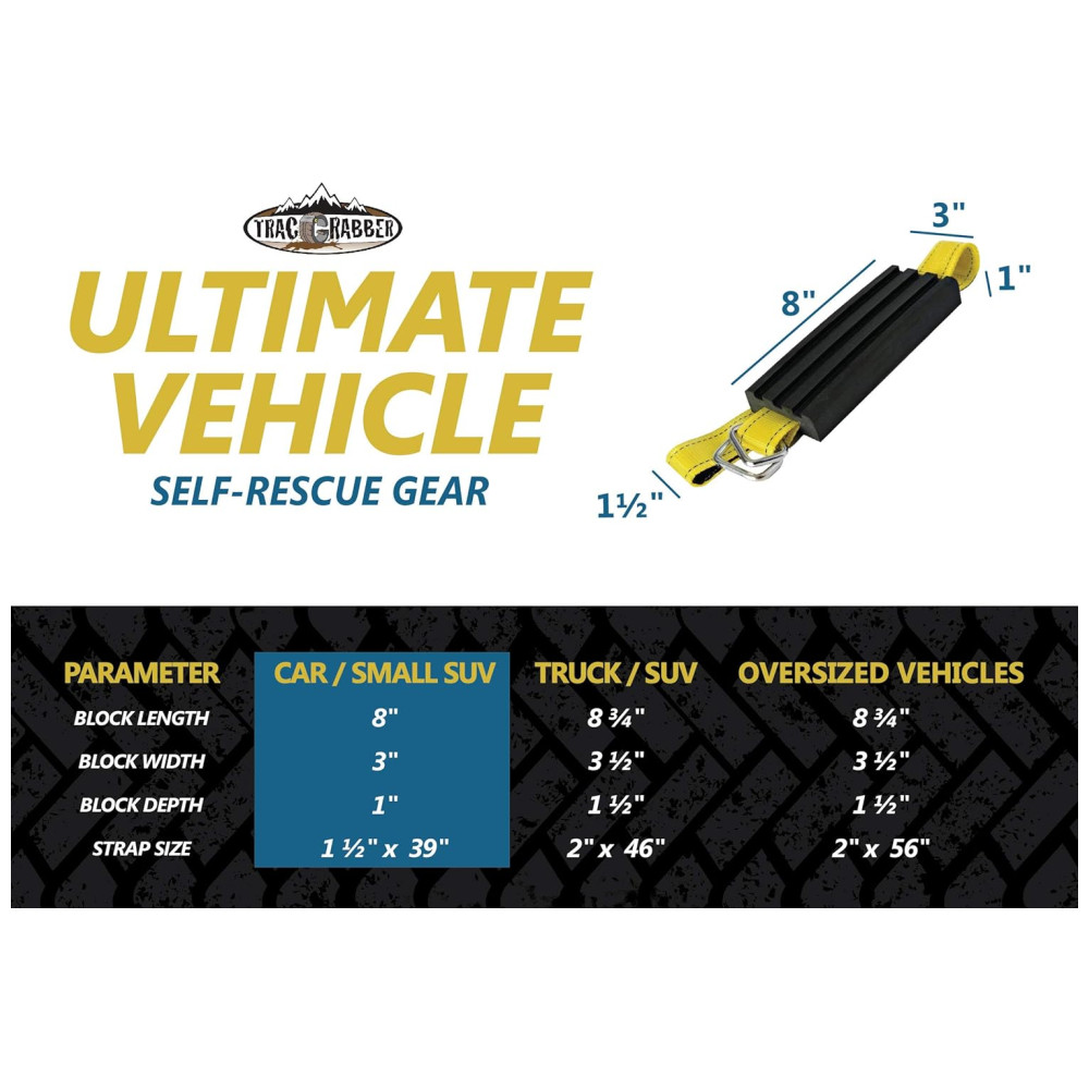 THE ULTIMATE TIRE GRABBER recomendado para uso em seus carros 4 × 4 e com tração nas quatro rodas, ATVs e UTVs. Cada bloco mede 20 L x 7 L x 2 P Centímetros Tamanho da alça 4 x