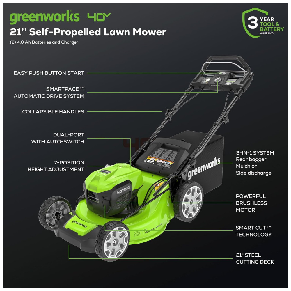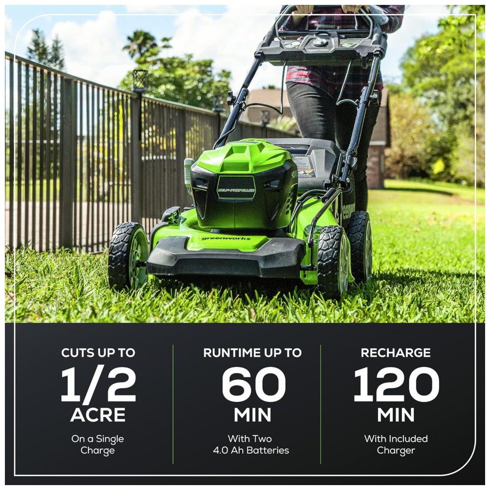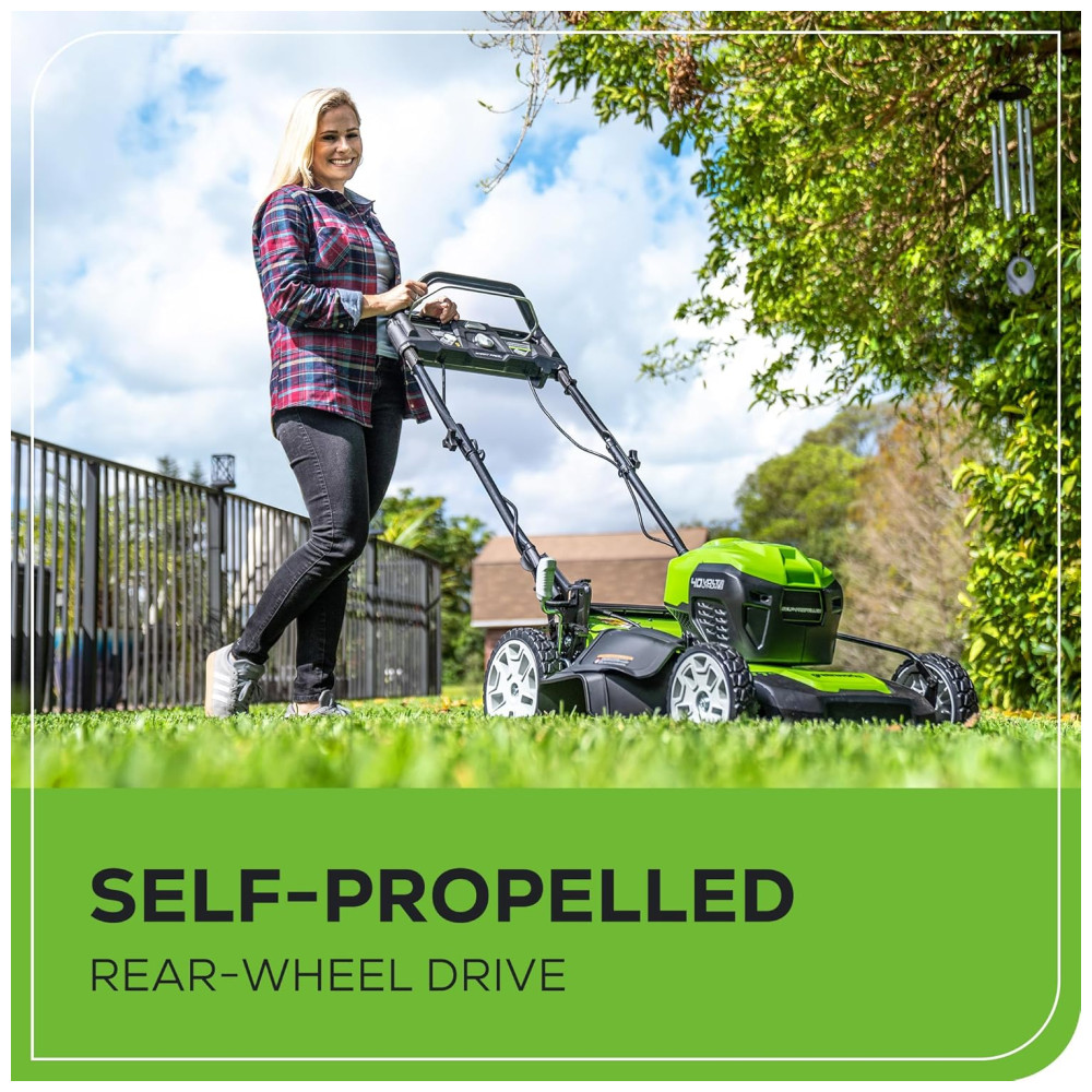 Cortador de Grama Autopropelido Greenworks 40V sem Escova Inteligente e Eficiente – 75 Ferramentas Compatíveis 2 Baterias de 4.0Ah e Carregador