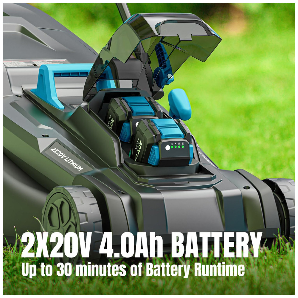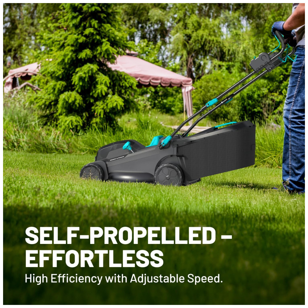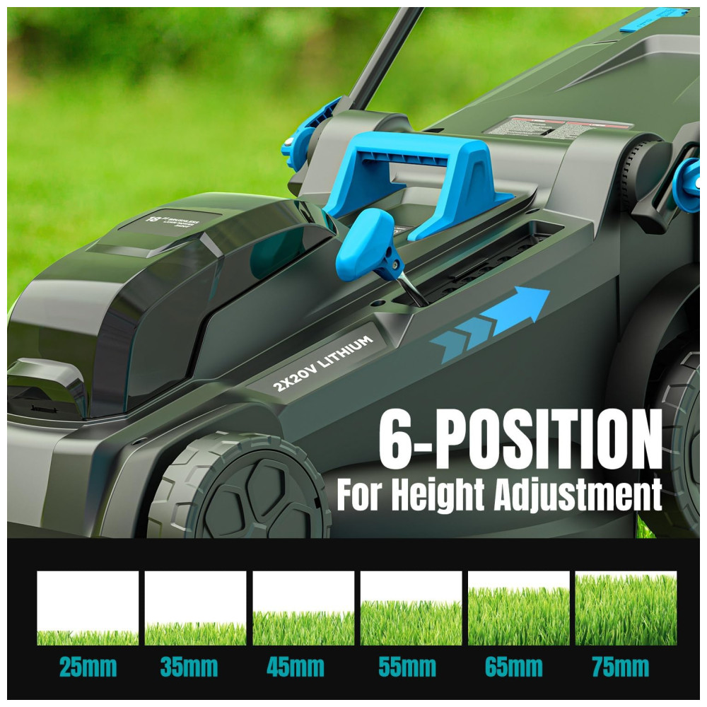 Cortador de Grama Autopropelido sem Fio 2x20V com Motor sem Escovas e Ajuste de Altura de Corte em 6 Posições 2 Baterias 4.0AhMightyMow