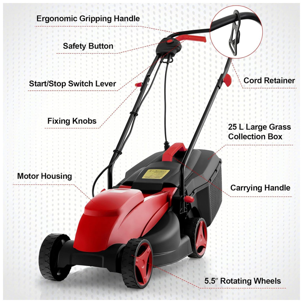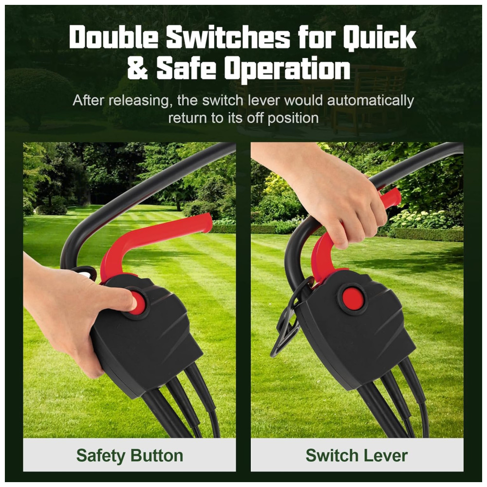 Experimente a máxima conveniência na manutenção do seu gramado! Nosso cortador de grama elétrico com fio tem 113 cm de largura, 45 cm de profundidade e 101,5 cm de altura, pesando apenas 7 kg, sendo a escolha perfeita para o corte de gramados em quintais e jardins. Possui um potente motor elétrico que atinge uma velocidade máxima de 3450 rpm, proporcionando um poder de corte premium. Não utiliza gasolina, óleo ou emite poluentes durante a operação. Além disso, as posições de corte podem ser ajustadas em 3 alturas, garantindo um gramado bem cuidado de acordo com suas preferências. Equipado com uma grande caixa de coleta de grama de 25 L, mantém o quintal limpo sem interrupções frequentes para esvaziar. A segurança é primordial com nosso sistema de duplo interruptor, composto por um botão de segurança e alavanca de acionamento para uma operação segura e rápida. Após o uso, a alça dobrável facilita o armazenamento, sendo ideal para espaços compactos. Eleve sua rotina de cuidados com o gramado com este cortador de grama confiável e fácil de usar.