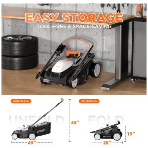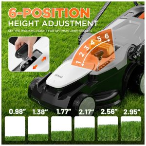 Cortador de Grama Elétrico Litheli 16 Polegadas 20V para Jardins Leve e Sem Fio com Ajuste de Altura em 6 Posições e 4 Baterias de 4.0Ah Inclusas