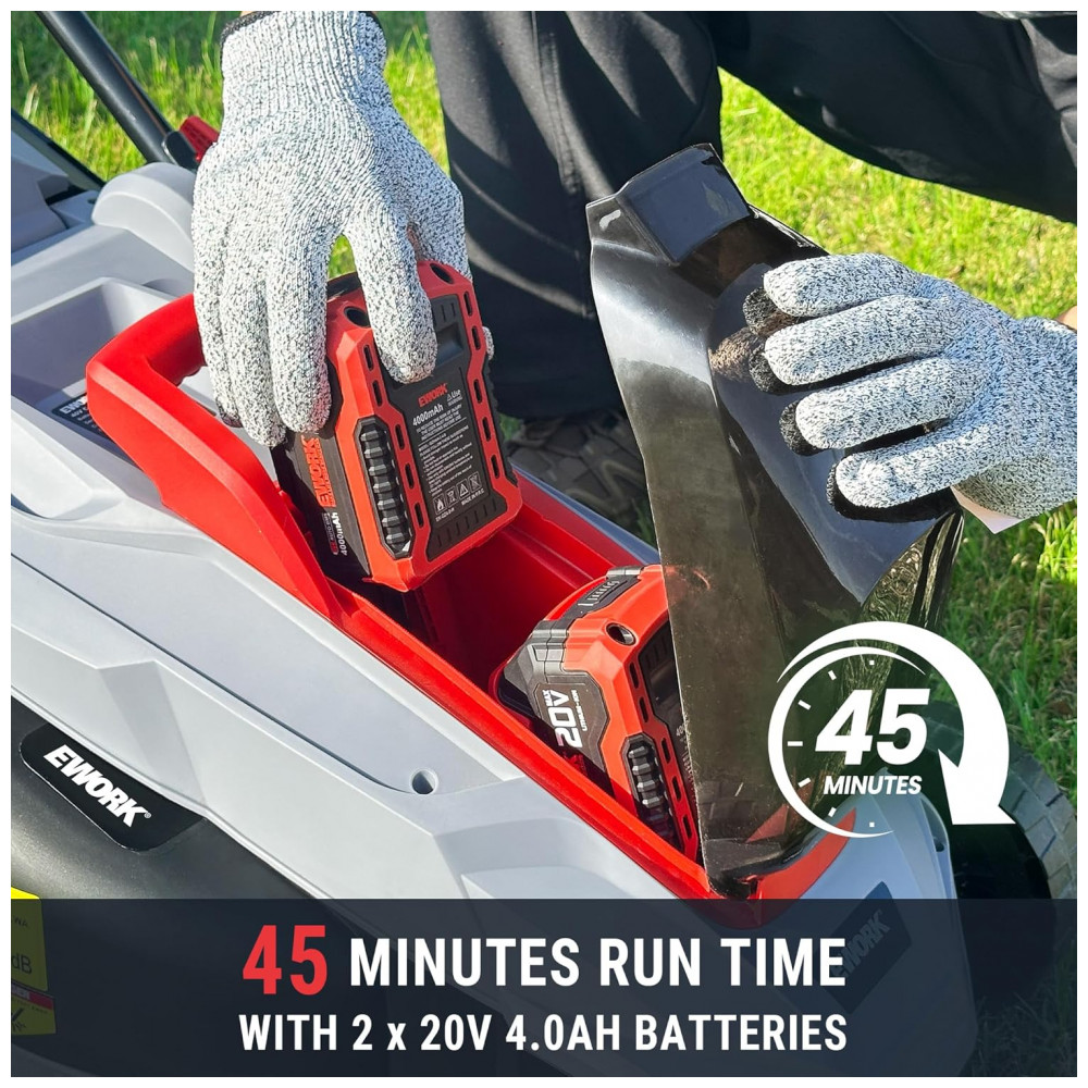 Cortador de Grama Elétrico sem Fio EWORK 40V Motor sem Escovas 5 Ajustes de Altura com 2 Baterias de 20V 4.0Ah e Carregador