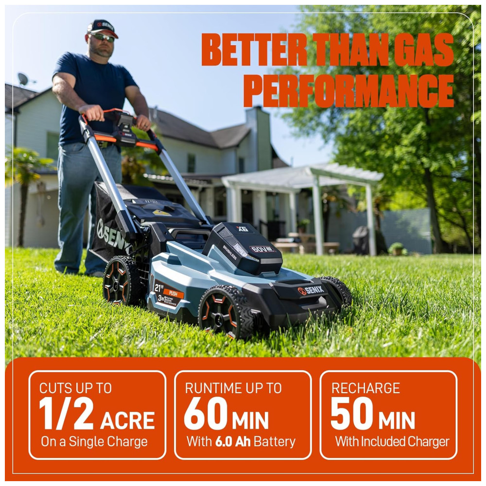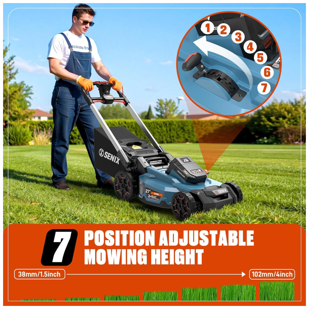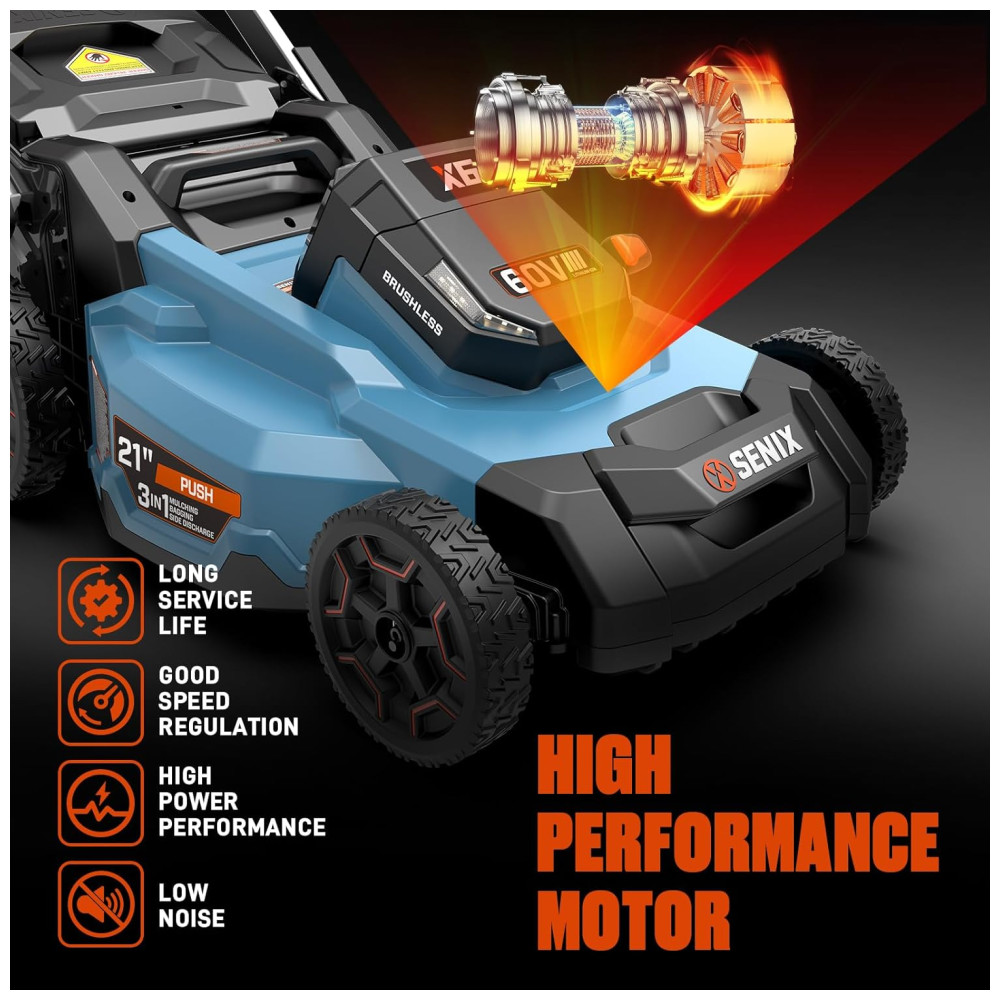 Cortador de Grama Elétrico SEM FIO SENIX X6 60 Volts Trituração e Descarga Lateral – Bateria de Íon de Lítio