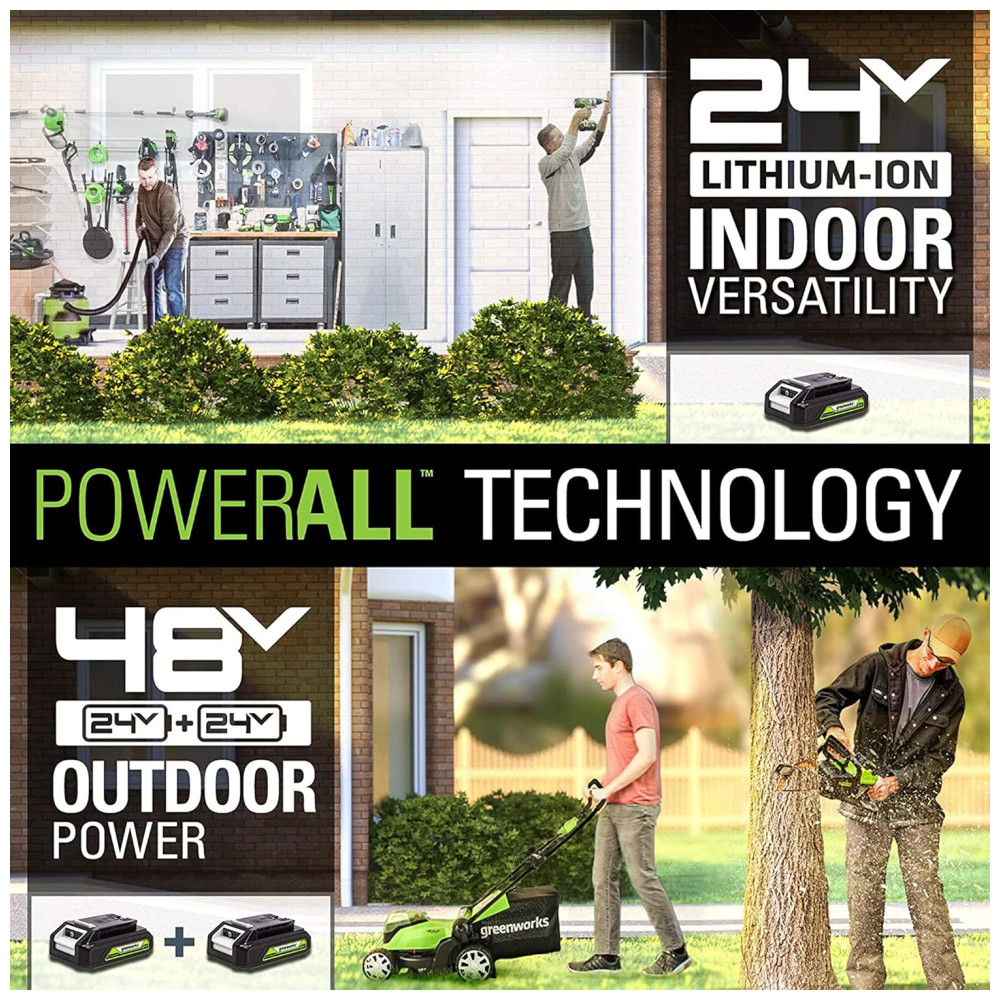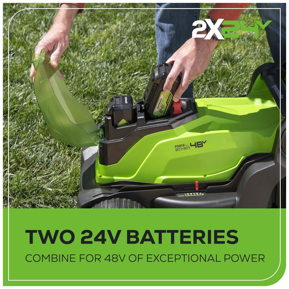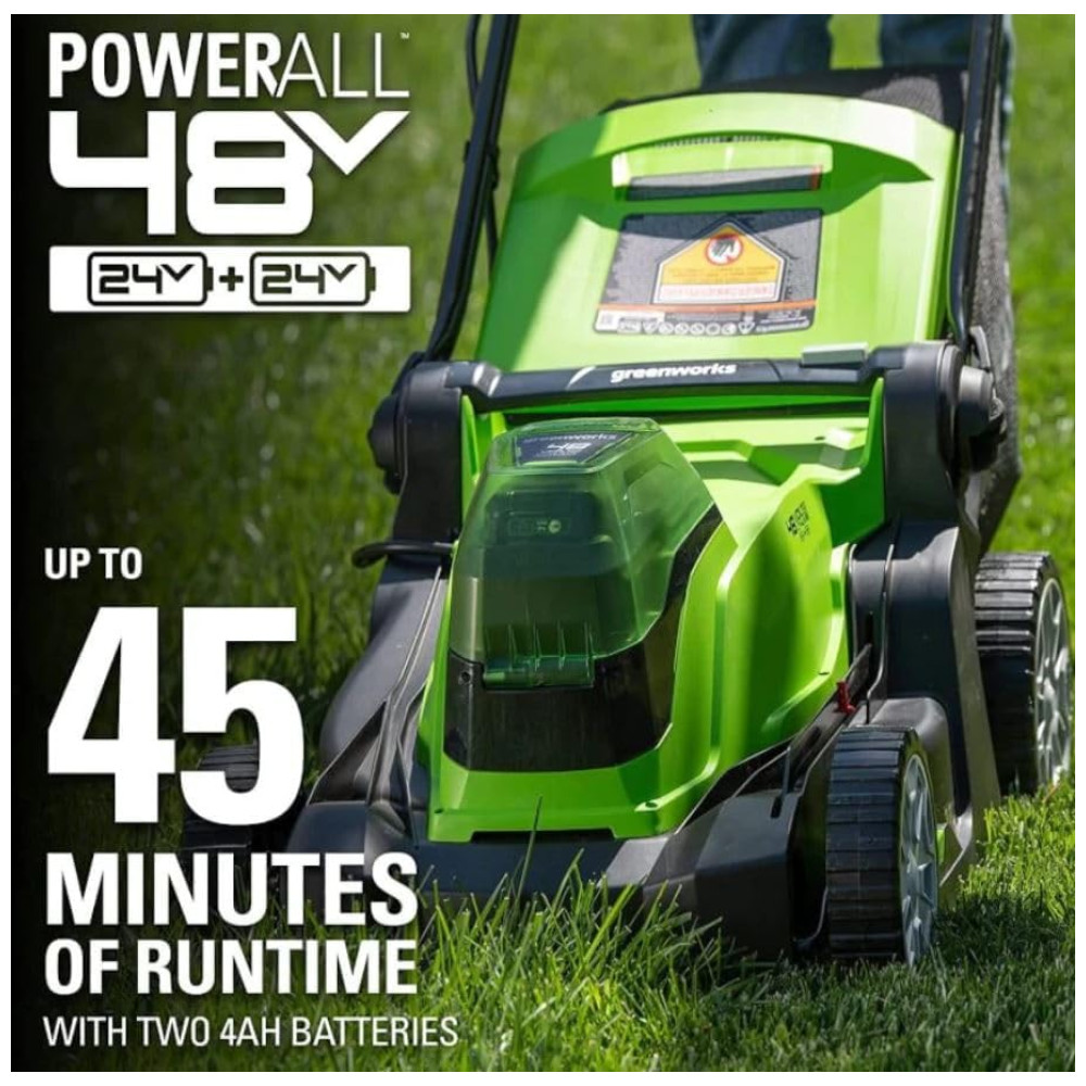 Cortador de Grama Elétrico Greenworks 48V 2 x 24V Baterias 4.0Ah e Carregador Rápido Dual Port Inclusos