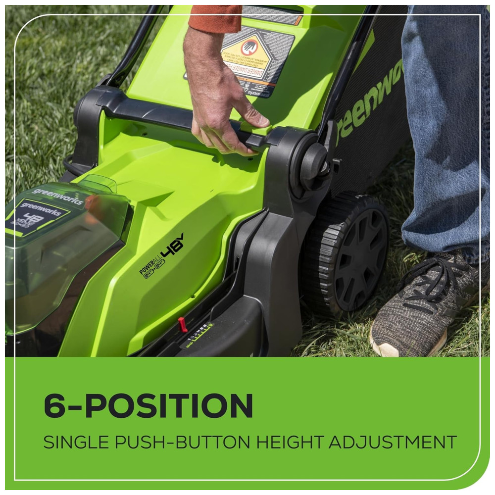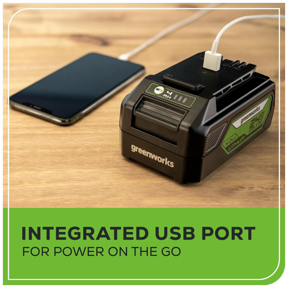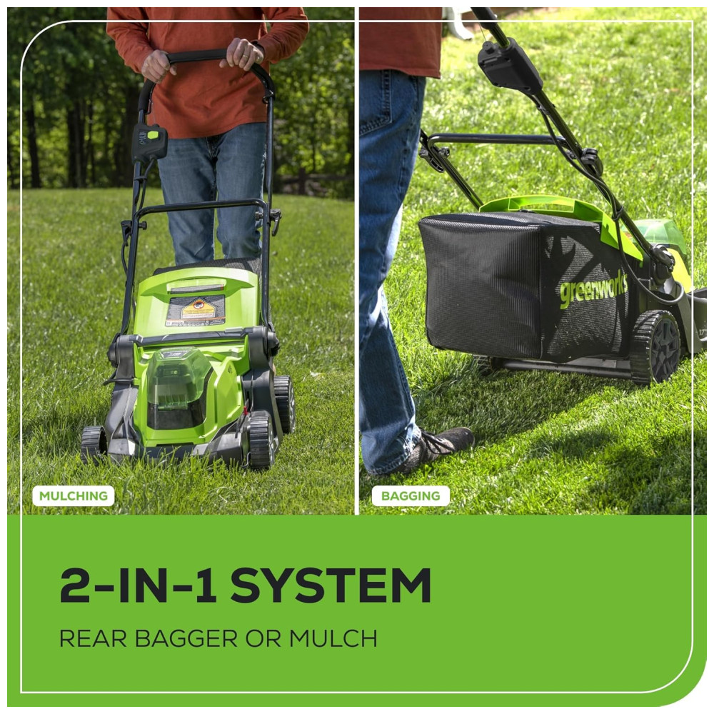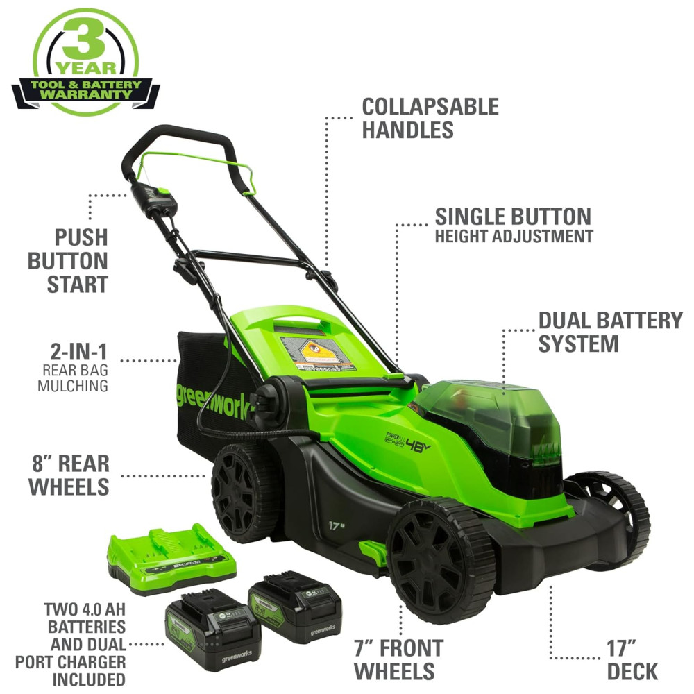 Cortador de Grama Elétrico Greenworks 48V 2 x 24V Baterias 4.0Ah e Carregador Rápido Dual Port Inclusos