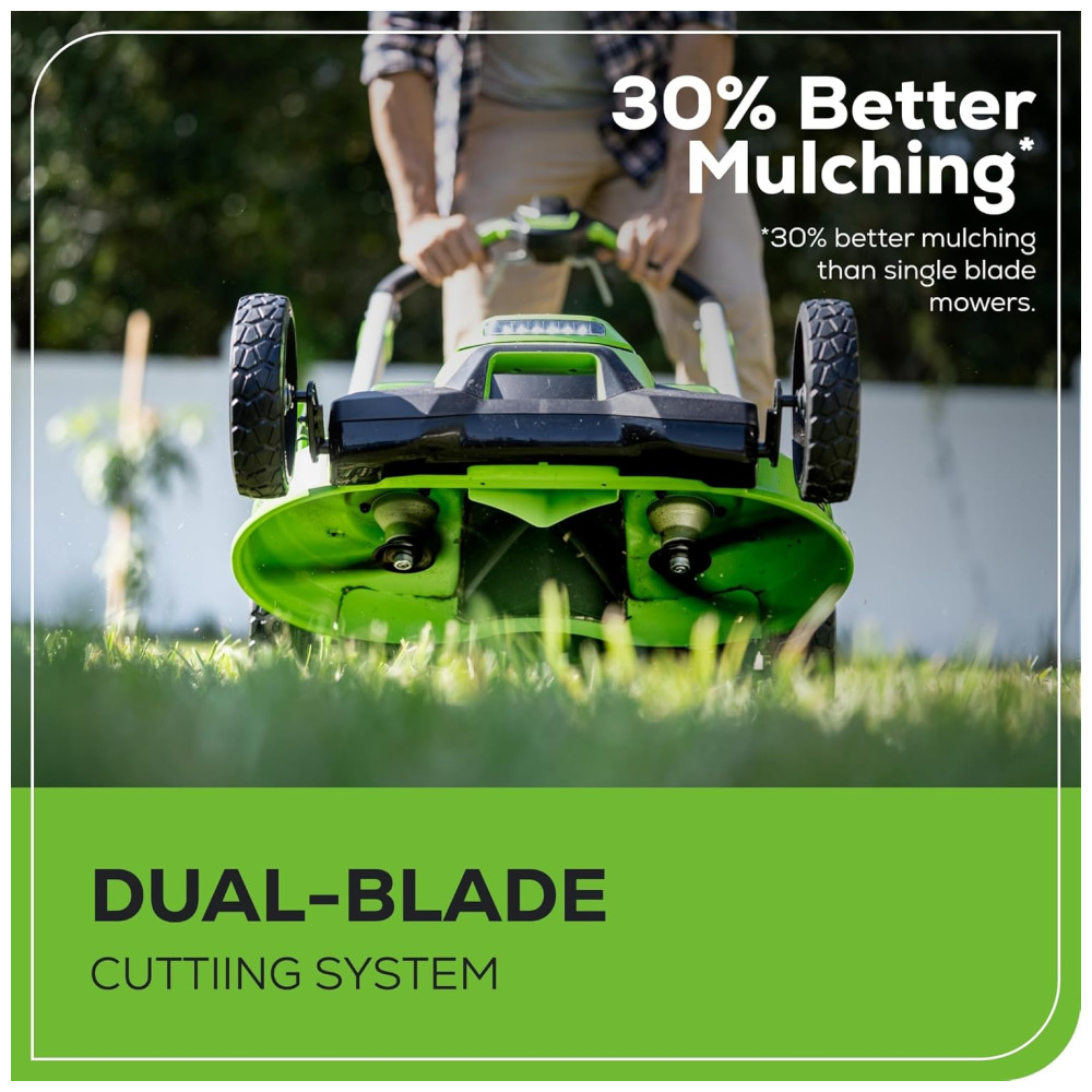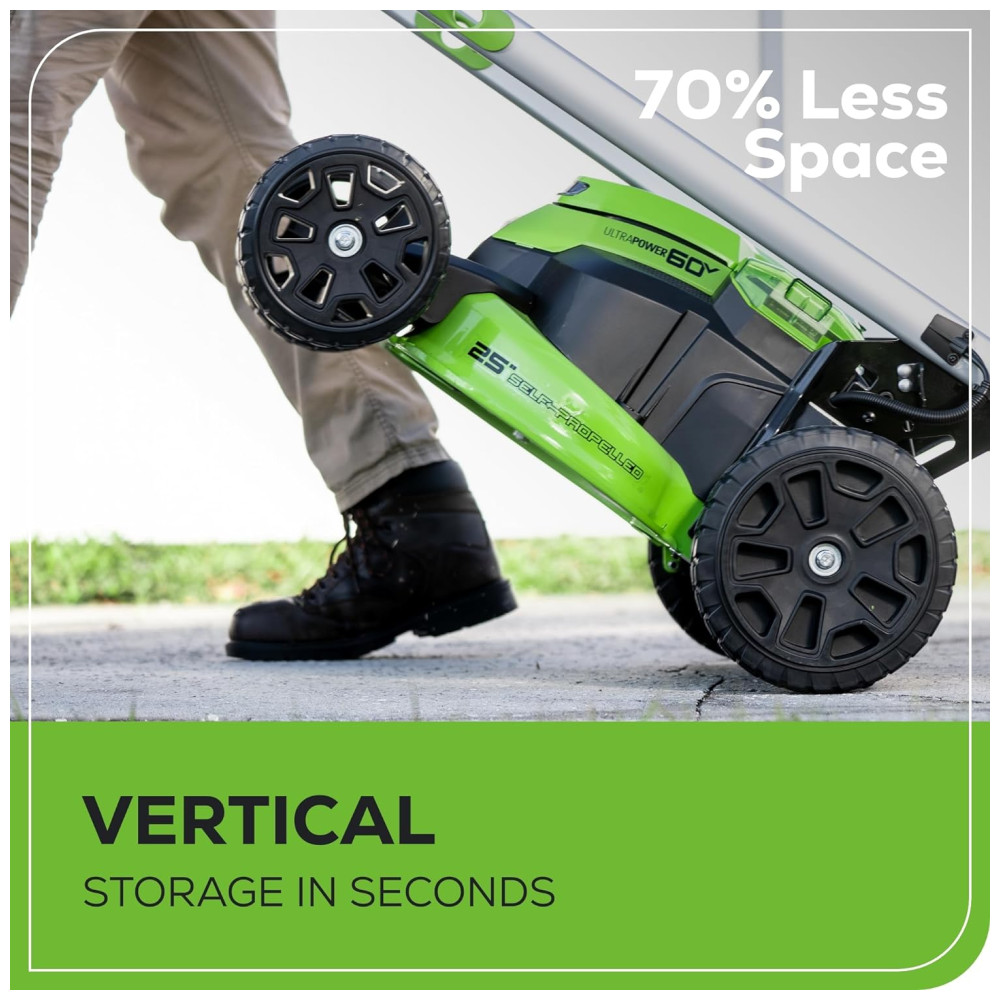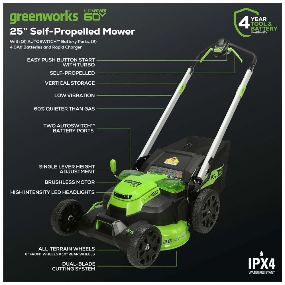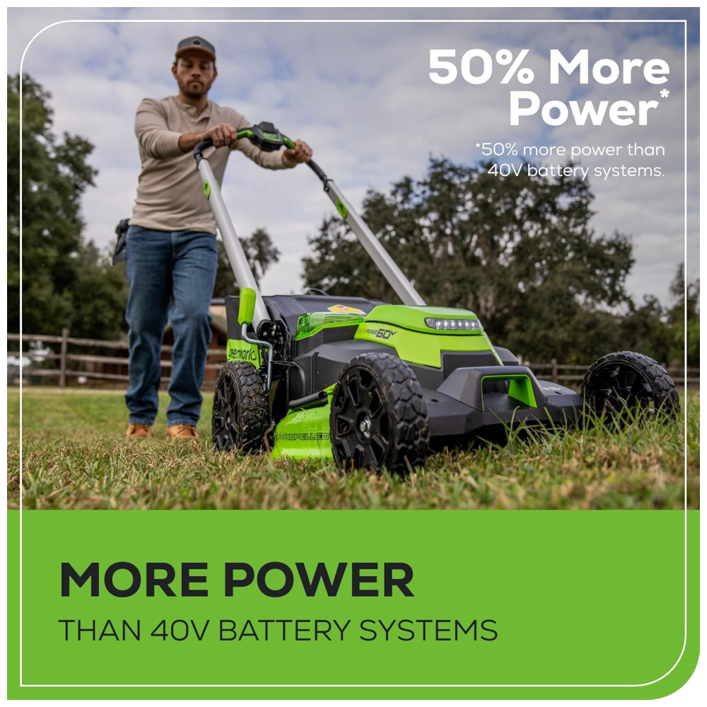 Cortador de Grama Sem Fio Greenworks 60V Autopropelido com Luzes LED Cabos de Alumínio 2 Baterias de 4.0Ah e Carregador Rápido com Duas Portas