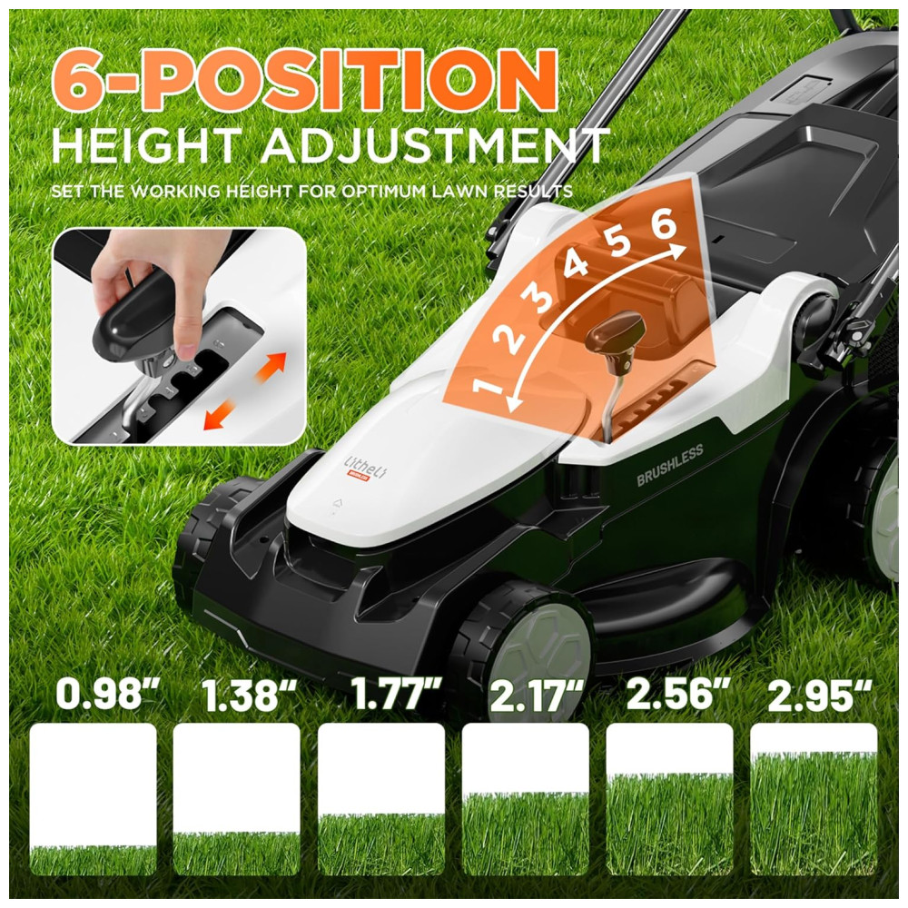 Cortador de Grama Litheli 2 x 20V Sem Escova para Jardins Leve e Sem Fio com Ajuste de Altura em 6 Posições Inclui 2 Baterias de 4.0Ah