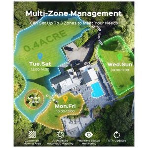 O Cortador de Grama Robô N1600 PRO da YARDCARE emprega posicionamento duplo RTK + Visão AI para mapeamento preciso em nível de centímetros, otimizado para gramados complexos com navegação exata. Configure limites virtuais sem fios de contorno e gerencie múltiplas zonas de corte pelo aplicativo YARDCARE, abrangendo até 1600 m² com operação eficiente e contínua.