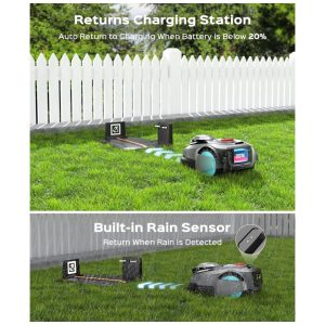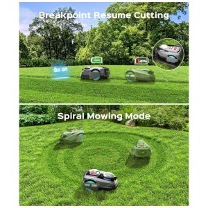O controle via APP permite personalizar horários de corte, modos operacionais e monitoramento em tempo real pelo smartphone, com retomada automática pós-recarga para desempenho ininterrupto. Sistema de detecção de obstáculos 3D com sensores inteligentes reconhece mais de 300 tipos de objetos, assegurando navegação fluida em terrenos irregulares e inclinações de até 20°.