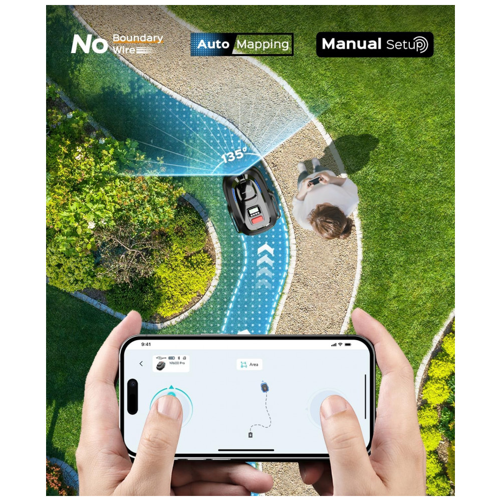 O Cortador de Grama Robô N1600 PRO da YARDCARE utiliza posicionamento duplo RTK + Visão AI para mapeamento preciso em nível de centímetros, ideal para gramados complexos com navegação exata. Gerencie zonas de corte múltiplas e limites virtuais sem fios de contorno via aplicativo YARDCARE, cobrindo até 1600 m² de área com eficiência operacional contínua.