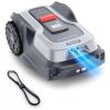 O cortador de grama robô sem fio RoboUP T1200Pro 2025 versão com 24 lâminas de reposição utiliza sistema de posicionamento RTK+Visão para operação precisa sem fios perimetrais enterrados. Configuração via aplicativo permite ajuste de altura de corte de 3 a 6 cm, compatível com diferentes tipos de grama, e cobertura de até 0,15 hectare com capacidade de inclinação de 20°/36% para terrenos irregulares.