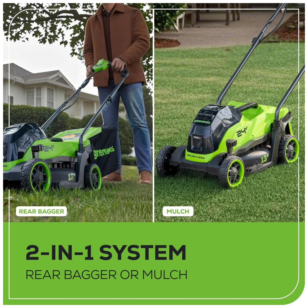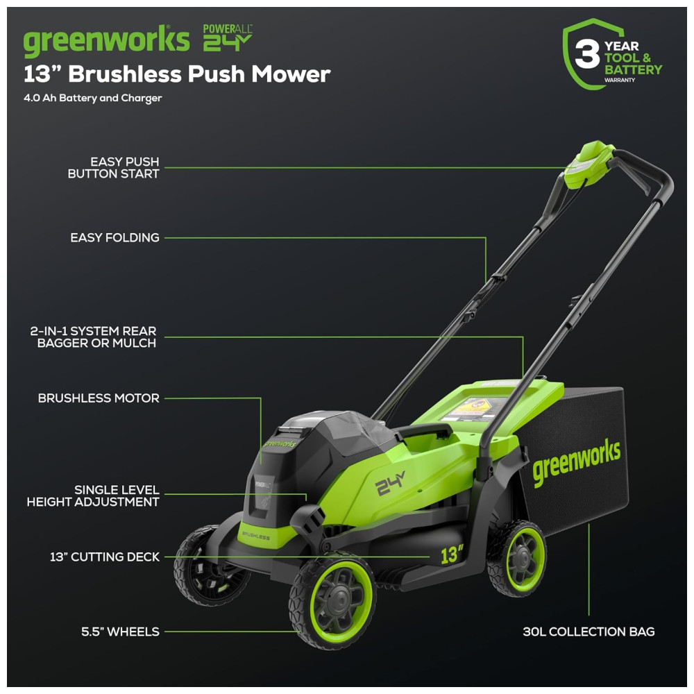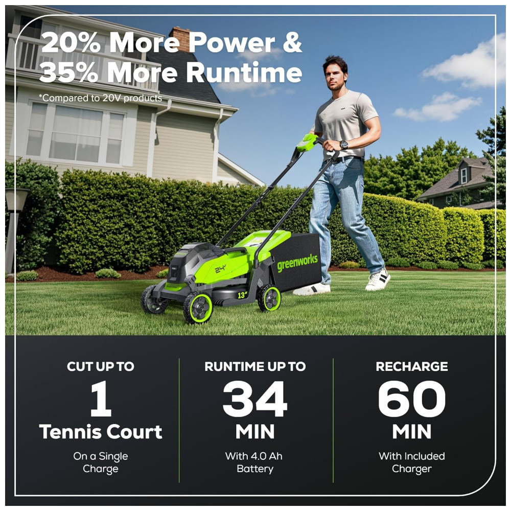 Cortador de Grama sem Fio Greenworks 24V 13″ Brushless Push com Bateria de 4.0Ah e Carregador