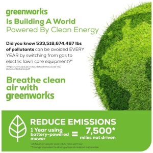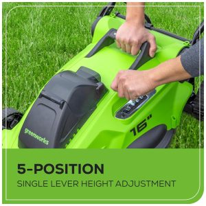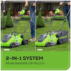 Facilite seu dia de trabalho no jardim com o cortador de grama Greenworks 40V sem escova. Este cortador de grama ecológico fornece a potência necessária com até 45 minutos de autonomia com a bateria de 4.0Ah totalmente carregada. Mais leve que os cortadores de grama a gasolina tradicionais, possui uma plataforma de corte que permite manobras fáceis em quintais pequenos a médios, sendo ideal para áreas de até um acre de forma mais eficiente. A partida por botão e o peso reduzido o tornam uma excelente escolha para o seu gramado. O ajuste de altura de corte de um único braço, com 5 posições, oferece uma faixa de altura de corte de até 8,59 cm e no mínimo 3,17 cm, para o melhor corte em qualquer ambiente. A função 2 em 1 oferece uso versátil com opções de corte mulching e saco traseiro para grama. Este cortador de grama a bateria é praticamente livre de manutenção e liga instantaneamente com um simples botão de partida. Não usa gasolina, não requer óleo e não emite gases, mas possui muita potência. O cortador de grama elétrico a bateria vem com cortador, saco coletor de grama, bateria de cortador de grama de 40V 4.0Ah, carregador e manual do operador.