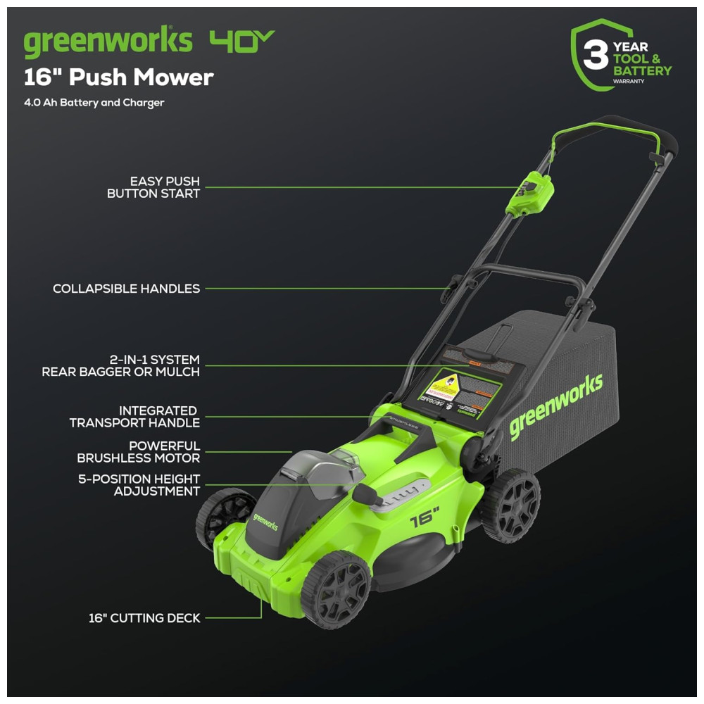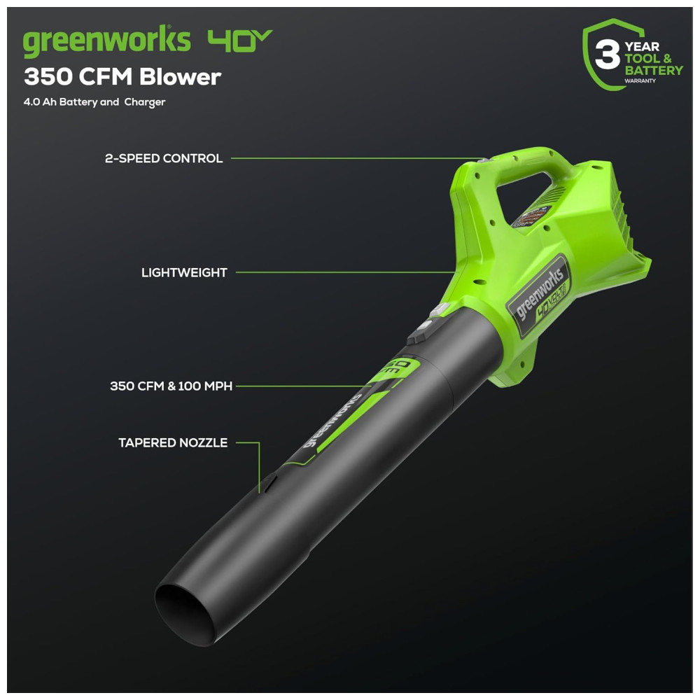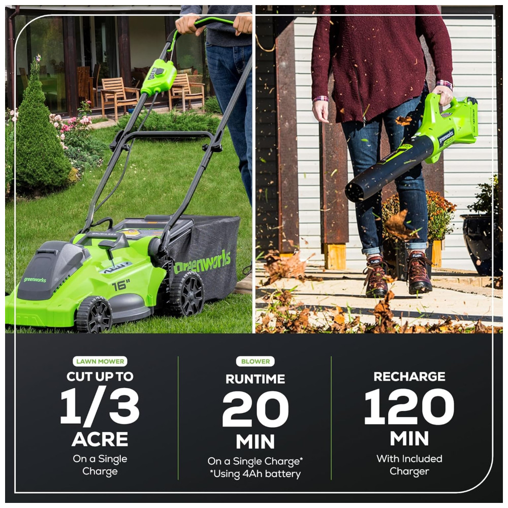 Cortador de Grama Greenworks 40V Sem Escova com Soprador 350 CFM Bateria de 4.0Ah e Carregador Inclusos – Ideal para até 1 Acre!