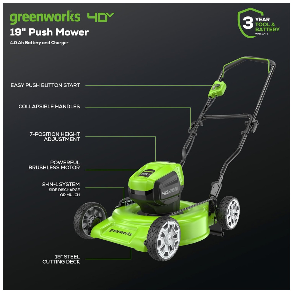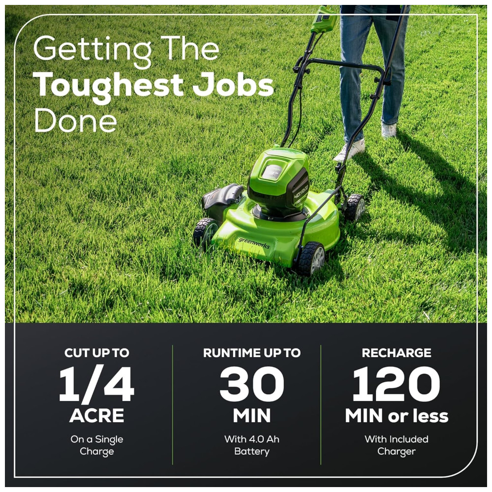 Cortador de Grama sem Fio Greenworks 40V com Motor Sem Escovas – Bateria 4.0Ah e Carregador