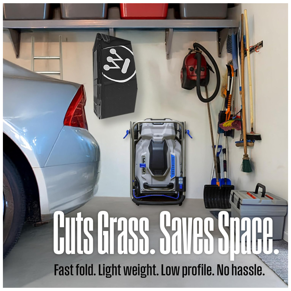 Possui largura de corte de 46 cm com corte de ponta a ponta, garantindo cobertura ampla e sem espaços não cortados. O coletor traseiro tem capacidade para 49 litros, reduzindo paradas para esvaziamento.