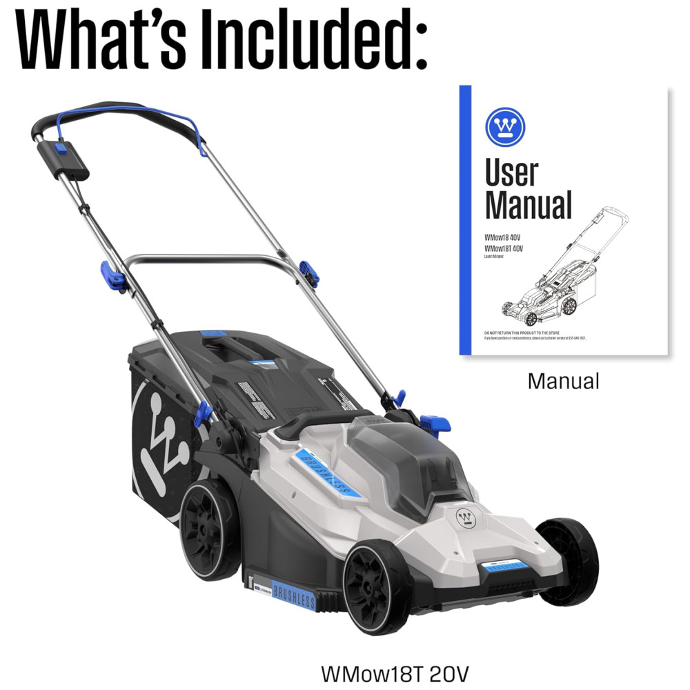 O cortador de grama sem fio Westinghouse 40V modelo WMow18T é alimentado por duas baterias de íons de lítio de 20V (vendidas separadamente), proporcionando alto desempenho sem a manutenção dos modelos a gasolina. Com lâmina que gira a até 3100 RPM, oferece corte rápido e uniforme em gramados altos e densos.