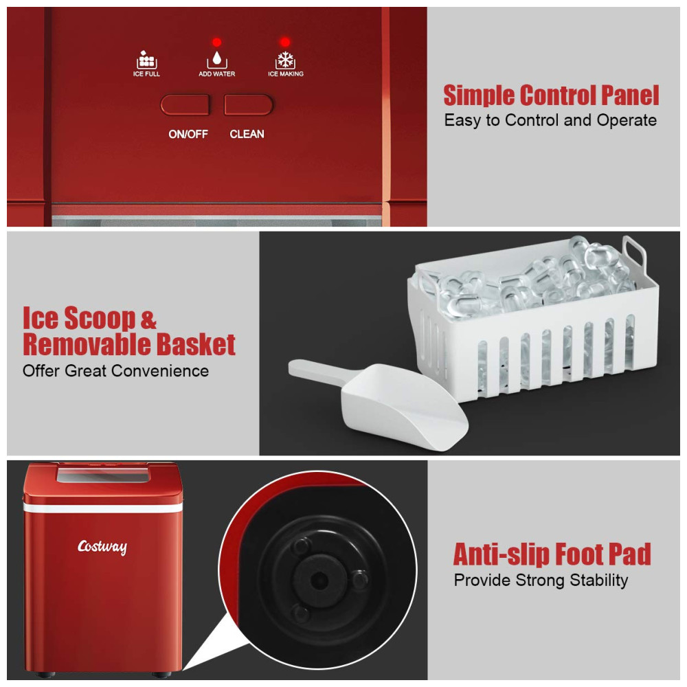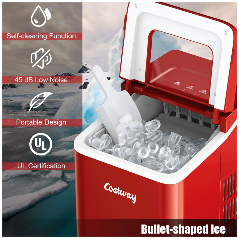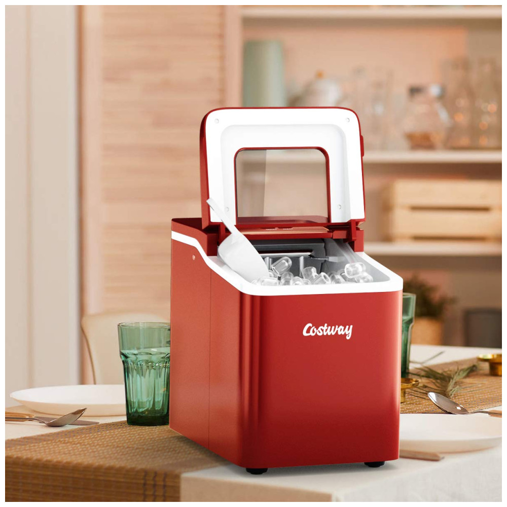 COSTWAY Máquina de Gelo Automática Portátil até 11 kg de Gelo em 24h 110V Vermelha