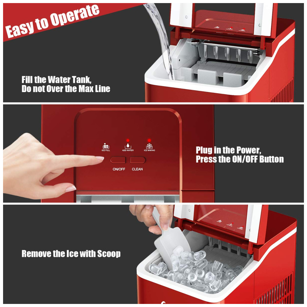 Design portátil e compacto Medindo 30 x 22 x C x L x A de dimensão, esta máquina de fazer gelo de bancada com cabo de alimentação de 70 é adequada para casa, escritório, festa e bar, saboreando comida deliciosa em qualquer lugar. E o design portátil e compacto permite que você carregue e zene com facilidade.